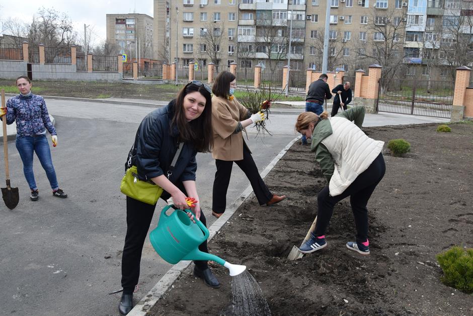 Детский сад №3 по Ворошилова, 63 (в поселке ХБК) отметил долгожданное новоселье 1 марта 2021 года. Он встретил своих первых воспитанников просторными группами, новой мебелью (в приобретении и установке которой помог председатель городской Думы – глава города Шахты, депутат городской Думы по 24 избирательному округу Андрей Горцевской) и обширной территорией (свыше 5 тысяч кв. метров), требующей немало времени, трудов и вложений для создания красоты и уюта. Ускорить процесс Андрей Горцевской решил массовыми озеленительными работами на площадке дошкольного учреждения, которые организовал и сам же возглавил. Вместе с ним трудились депутат городской Думы Аркадий Горцевской, представители аппарата городской Думы, центра боевых искусств «Георгий Победоносец», а также заведующая детским садом №3 Елена Блохина, главный бухгалтер учреждения Марина Ерошенко и рабочий по комплексному обслуживанию здания Василий Шевцов. Общими и дружными усилиями высадили 5 березок, 5 рябин, 3 туи, 2 голубые ели и 100 роз четырех сортов: «бордо», «оранж», «белая» и «черная магия». «С вашей легкой руки, думаю, все приживется! Как же теперь у нас будет красиво!» -поблагодарила руководитель учреждения Елена Блохина. Оценили масштаб работ и родители будущих воспитанников детского сада, пришедшие погулять на его территории со своими малышами.