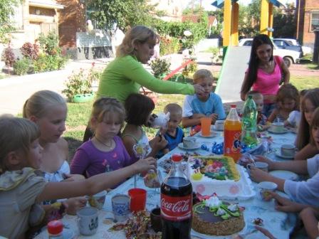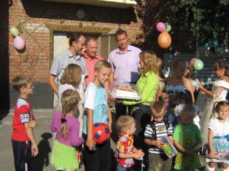 Депутат А.В.Скориков, также оказывая большое уважение к жителям этого дома, подарил детям огромный торт, украшенный сказочными героями.