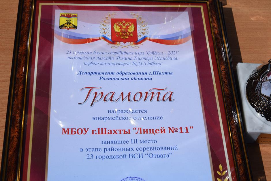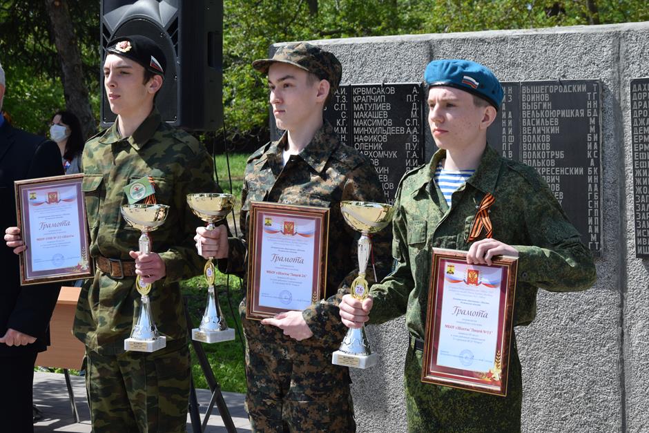 Приветствовали участников военно-спортивной игры заместитель главы Администрации Ольга Тхак, начальник отделения планирования, предназначения, подготовки и учета мобилизационного ресурса военкомата по городу Шахты и Октябрьскому району Сергей Бессараб, директор Станции юных техников Борис Колегаев. В митинге также приняли участие директор Департамента образования Надежда Соболева, председатель Совета ветеранов Александр Пятаков, начальник отдела по молодежной политике Администрации города Ирина Борисенко, командующий игры Николай Кадыров, начальник штаба ВСИ «Отвага» Николай Енохин, руководитель Центра патриотического воспитания Иван Насонов и руководитель Поста №1 Юрий Кузнецов. Кубками и грамотами за 3 место награждены юнармейские отделения лицеев №№11,26 и школы №22; 2 место – у гимназии им. А.С. Пушкина, лицея №6 и школы №36; лидерскую позицию заняли школы №№1, 35 и лицей №3. За достойный вклад в патриотическое воспитание молодежи поощрены также преподаватели ОБЖ. В память об ушедших героях Великой Отечественной войны к «Братской могиле» возложили цветы.