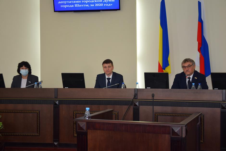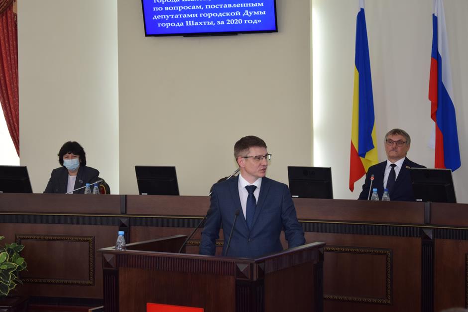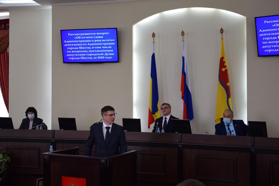 Отчет главы Администрации города Шахты о результатах своей деятельности за 2020 год стал первым из обсуждаемых вопросов. То, что сделано, — результат совместной работы Администрации, депутатского корпуса, органов надзора и жителей, отметил в начале доклада Андрей Ковалев. В Отчете говорилось о достигнутом и проблемах в ходе реализации нацпроектов по разным направлениям: здравоохранению (капитально отремонтирована детская поликлиника на ХБК, начат ремонт городской детской больницы и детской поликлиники на Мечникова, возведены новые модульные здания инфекционного отделения и баклаборатории, приобретены новое медоборудование и машины скорой помощи), образованию (введен детсад на ХБК, продолжается строительство школ на Дачной и в микрорайоне Олимпийском, детсада на Мечникова), демографии, физической культуре и спорту, жилью и городской среде (достроены дома по Достоевского и Хомякова, обманутых дольщиков в Шахтах больше нет), строительству и реконструкции дорог(отремонтированы 10 улиц и участок на Шевченко).