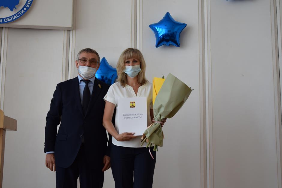 Много теплых, искренних слов прозвучало в адрес руководителя службы Натальи Лазутиной. Ряд сотрудников удостоен наград. Благодарственными письмами Законодательного Собрания Ростовской области отмечены Виктор Егоров и Наталья Шумихина. Благодарственные письма городской Думы за большой вклад в развитие и становление службы занятости города Шахты председатель городской Думы – глава города Шахты Андрей Горцевской вручил: