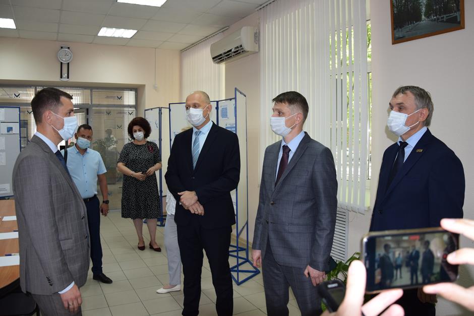 Вместе с заместителем губернатора Ростовской области Артемом Хохловым председатель городской Думы — глава города Шахты Андрей Горцевской, глава Администрации Андрей Ковалев посетили «Многофункциональный центр предоставления государственных и муниципальных услуг г. Шахты». На базе учреждения 1 июня открыт Центр регистрации транспортных средств МАУ «МФЦ». Это первая и крупнейшая на юге России структура по оказанию такого спектра услуг автовладельцам, — подчеркнул представитель донского правительства. Единственная проблема, существующая на этом, начальном, этапе деятельности – синхронизация баз данных, сообщила директор МФЦ Ирина Зверева. Но все вопросы решаемы в процессе работы,- подтвердил заместитель начальника ОГИБДД УМВД России по г. Шахты Дмитрий Сологуб. Артем Хохлов отметил прекрасные условия, созданные для получателей услуг в этих стенах.