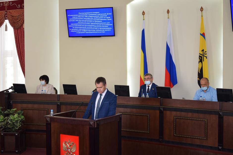 Седьмой вопрос «О внесении изменений в решение городской Думы города Шахты «Об утверждении «Порядка формирования, ведения, обязательного опубликования перечня муниципального имущества, свободного от прав третьих лиц (за исключением имущественных прав субъектов малого и среднего предпринимательства), предназначенного для предоставления его во владение и (или) пользование на долгосрочной основе субъектам малого и среднего предпринимательства и организациям, образующим инфраструктуру субъектов малого и среднего предпринимательства». Андрей Юрьев пояснил: «Порядок предоставления муниципального имущества в долгосрочное пользование распространяется теперь на физических лиц, не являющихся индивидуальными предпринимателями и применяющих специальный налоговый режим «Налог на профессиональный доход». Депутаты проголосовали «за».