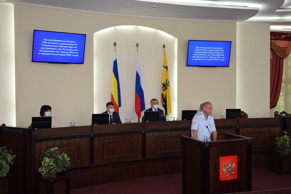 Первым вопросом повестки дня депутаты заслушали отчет о деятельности Управления Министерства внутренних дел Российской Федерации по Городу Шахты в первом полугодии 2021 года. Этот период отмечен снижением зарегистрированных преступлений до 1124, это на 6,9% меньше, чем за 6 месяцев прошлого года. Заместитель начальника УМВД России по г. Шахты Александр Болтенков отметилв своем докладе итоги по разным аспектам оперативно-служебной деятельности. Приоритетное внимание в своей работе шахтинские правоохранители уделяют борьбе с незаконным оборотом наркотиков. Выявлено 128 наркопреступлений, в том числе 48 фактов их сбыта. В суд направлено 90 уголовных дел указанной категории. В рамках обсуждения отчета председатель городской Думы – глава города Шахты Андрей Горцевской затронул необходимость взаимодействия Администрации, Думы и полиции в рамках проведения мероприятий по контролю за движением большегрузного транспорта по дорогам города, разрушающего их ввиду несоразмерной весовой нагрузки на полотно. Были также обращения депутатов к Александру Болтенкову по взаимодействию с участковыми уполномоченными. Руфат Алескеров выразил благодарность стражам порядка за закрытие аптеки на Воровского, которая вела реализацию запрещенных препаратов. Замначальника УМВД подчеркнул, что такая работа ведется постоянно, но из-за несовершенства законодательства это, к сожалению, не гарантируют 100%-ный результат: нарушители, как правило, возобновляют преступную деятельность, сменив адрес и вывеску. Но меры принимаются и будут продолжены. Благодарность за взаимодействие с шахтинской полицией прозвучало в завершении доклада и в адрес депутатского корпуса.