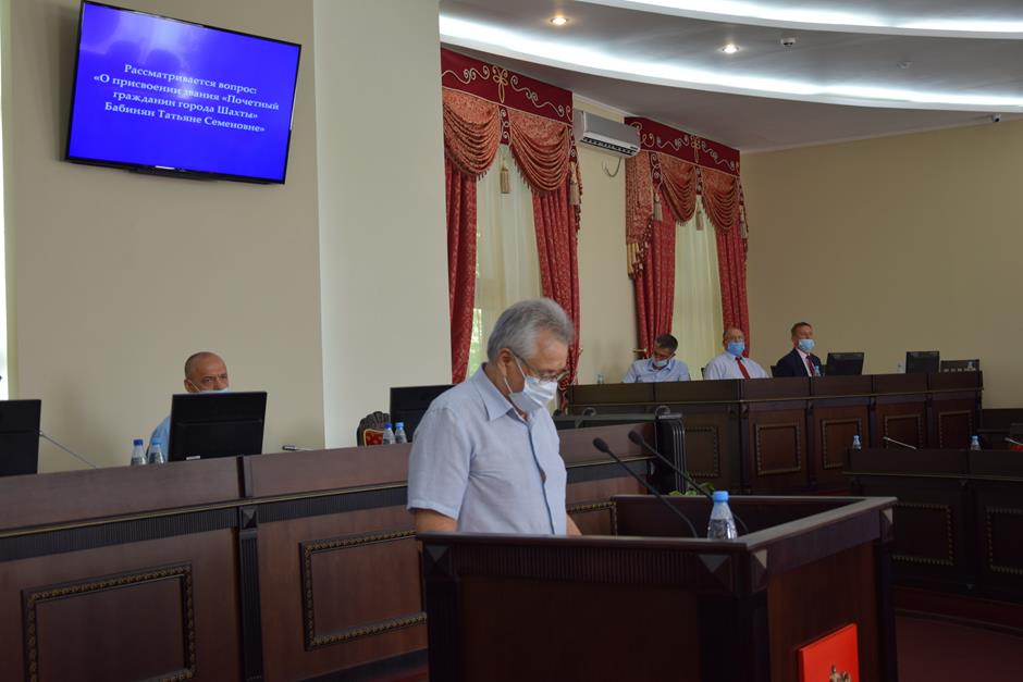 По девятому вопросу— «О присвоении звания «Почетный гражданин города Шахты» Бабинян Татьяне Семеновне» — выступил и. о. председателя Юрий Загорулько. Инициативу шахтинского Совета ветеранов, выдвинувшего кандидатуру для награждения, депутаты также поддержали единогласно.