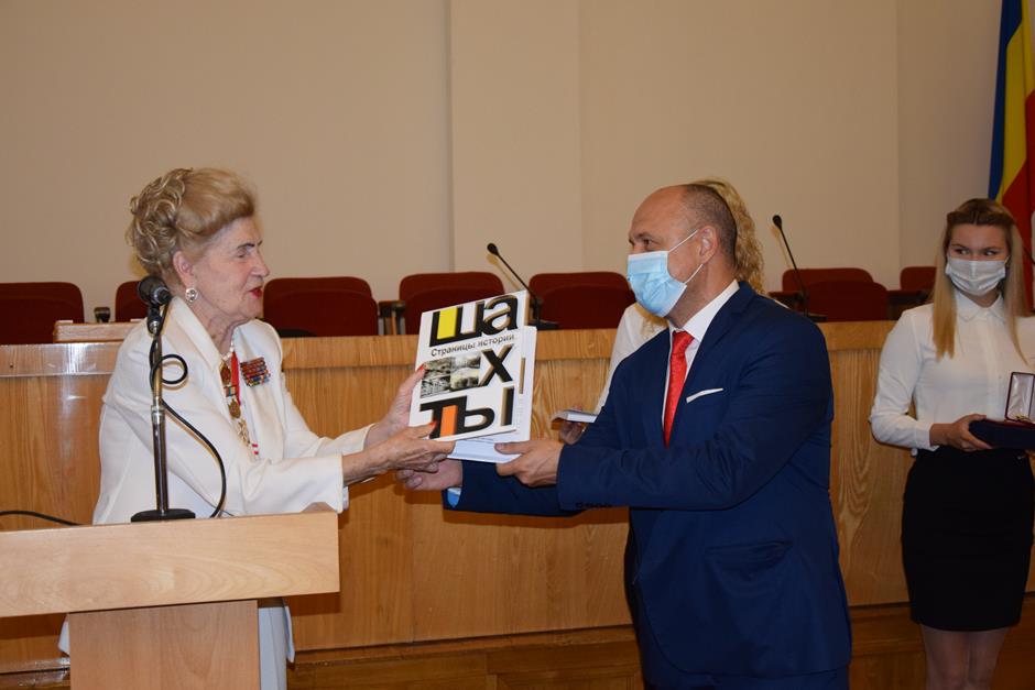 В соответствии с Постановлением городской Думы города Шахты №180, за особые личные заслуги, большой вклад в общественную жизнь города, активное участие в военно-патриотическом и духовно-нравственном воспитании молодежи Знака почета муниципального образования «Город Шахты» -медали «За заслуги перед городом Шахты» удостоена Ерёмина Галина Александровна, смотритель Шахтинского городского краеведческого музея, член президиума Совета ветеранов (пенсионеров) войны, труда, Вооруженных сил и правоохранительных органов города Шахты. Галина Еремина презентовала книгу «Шахты: страницы истории», поблагодарив за организацию спонсорской помощи и поддержку председателя городской Думы -главу города Шахты Андрея Горцевского.