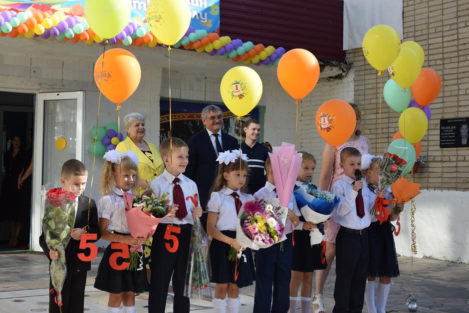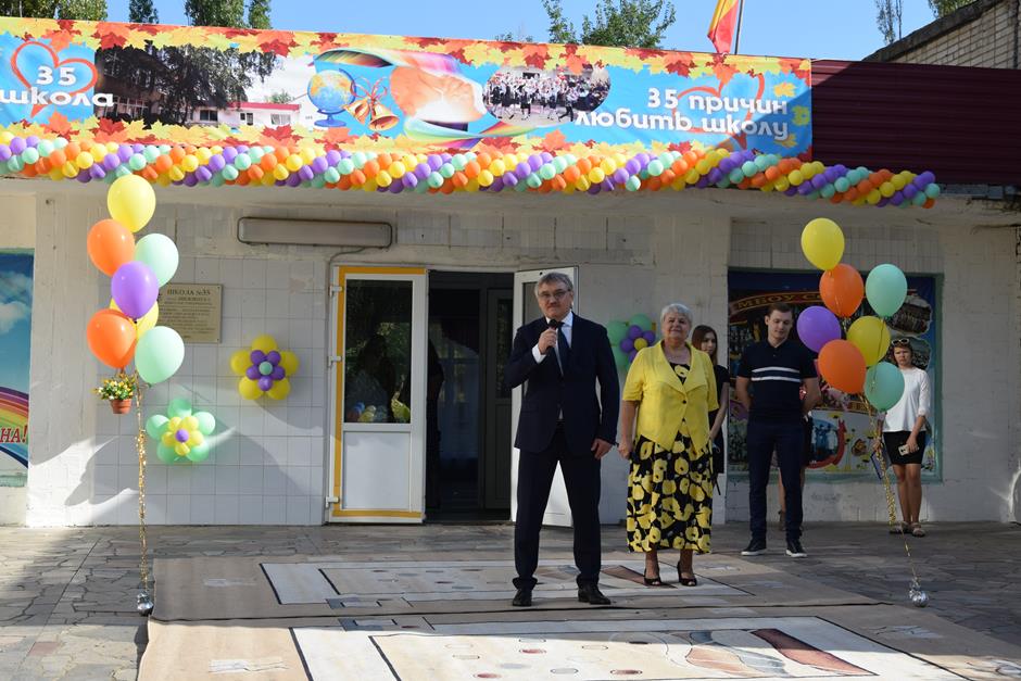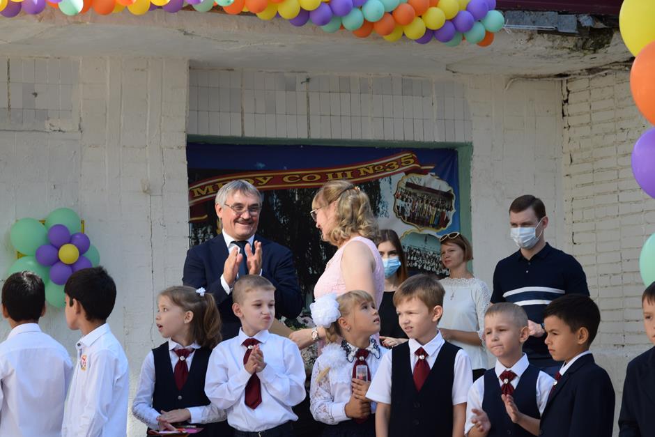 Председатель городской Думы — глава города Шахты Андрей Горцевской принял участие в первосентябрьской линейке школы №35