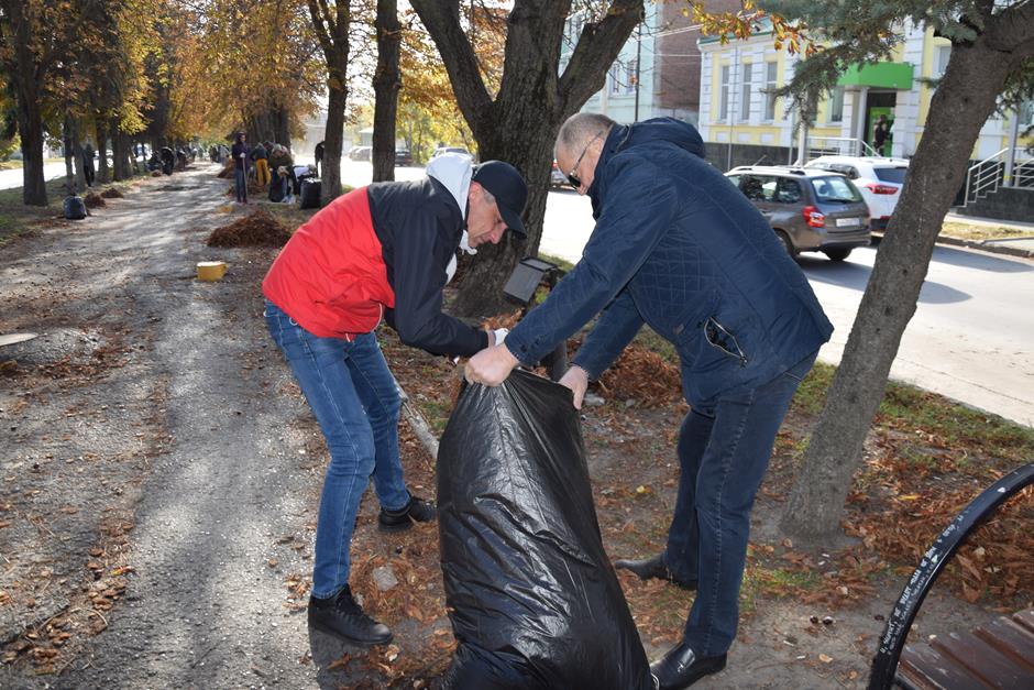 9 октября на Дону объявлен областной субботник. Не остался в стороне от общего дела и Шахты. Трудовые десанты – и массовые, и не очень многочисленные – можно было заметить в этот день в разных районах города. Аллею по улице Ленина (от Красного Шахтера – до Комиссаровского) приводили в порядок усилиями общими. В коллективной уборке приняли участие глава Администрации Андрей Ковалев и его заместители, депутаты городской Думы Константин Чередниченко, Ирина Левашова, Виктор Яровой, сотрудники аппарата городской Думы, специалисты Департаментов и структурных подразделений Администрации. Всего были задействованы более 100 человек. Вооружившись хорошим настроением и специальным инвентарем (вениками, граблям, лопатами), действовали слаженно и оперативно. В общей сложности удалось освободить от опавшей листвы и мусора площадь свыше 5 тыс. квадратных метров.