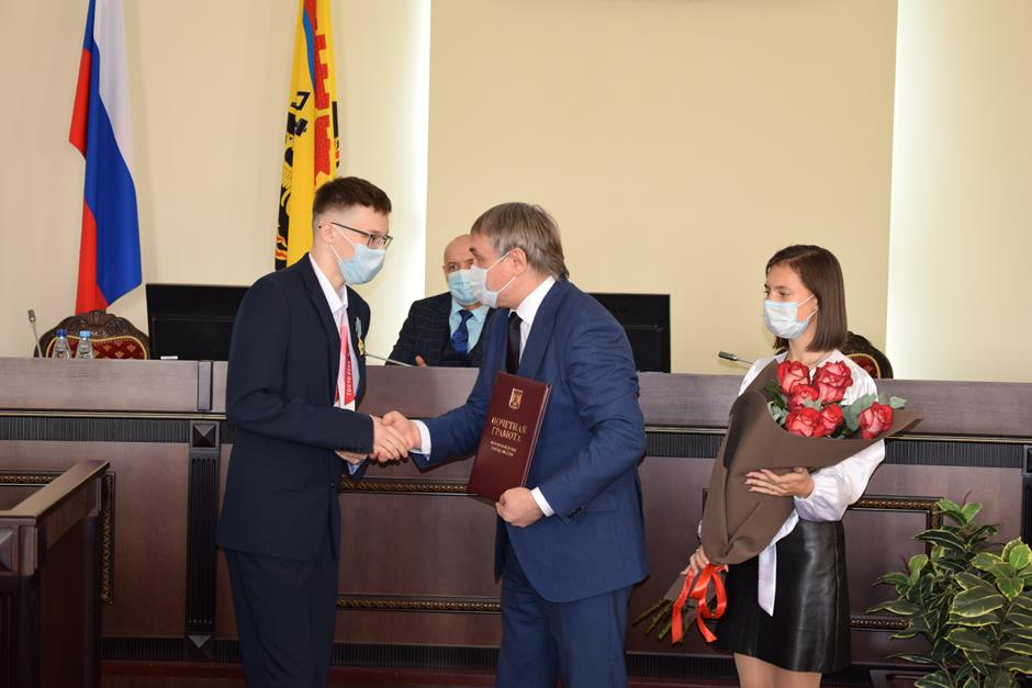 Председатель городской Думы – глава города Шахты Андрей Горцевской вручил награды шахтинским учителям и спортсменам