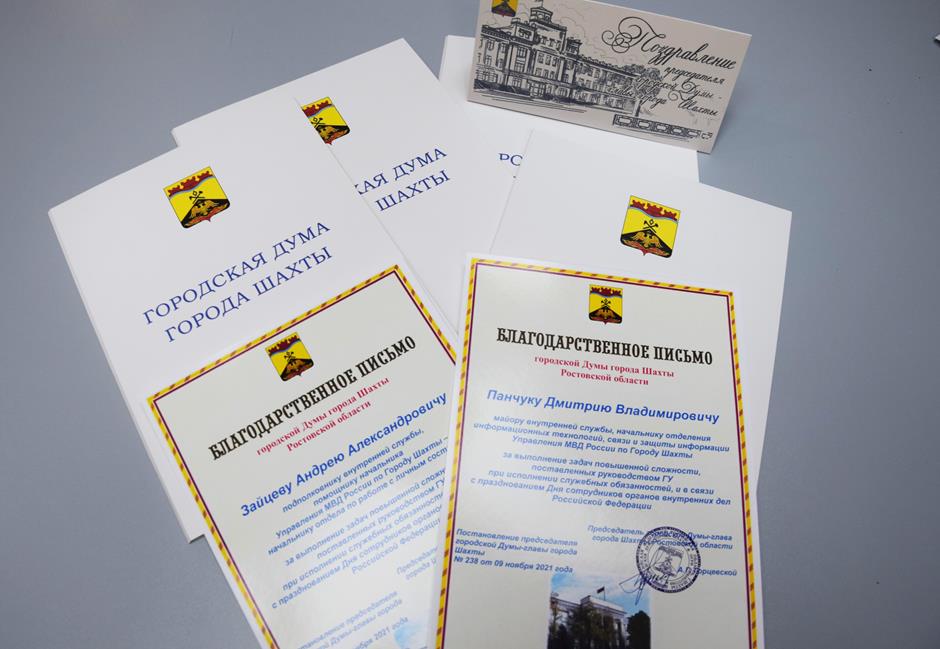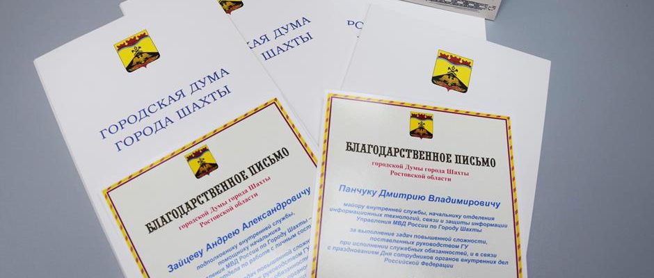 В День сотрудника органов внутренних дел Российской Федерации шахтинские полицейские удостоены Благодарственных писем городской Думы Города Шахты