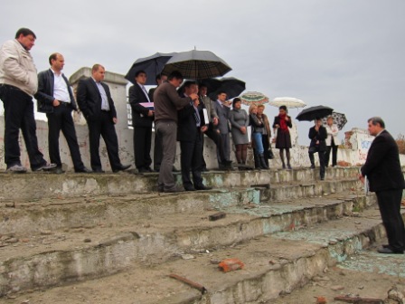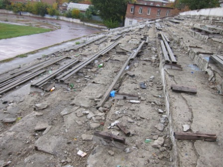 Во время всего заседания рабочей группы лил дождь, все присутствующие стояли под зонтами на разбитых ступеньках трибуны, где тут и там валялись бутылки. А взорам их открывался другой «самозастрой», тот самый, который расположен на проданной бывшей властью земле части стадиона. Эта сделка сейчас оспаривается в суде и есть надежда, что землю вернут в муниципальную собственность.