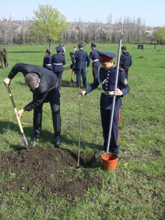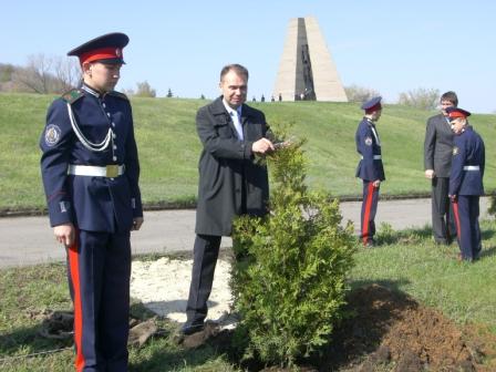Состоялась высадка сквера Победы близ мемориала жертвам фашизма на шахте им. Красина