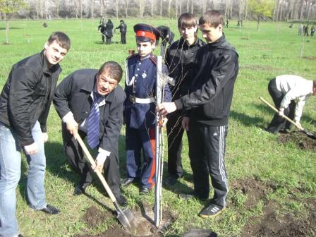 После завершения торжественной части мероприятия, депутаты городской Думы с ветеранами и активной молодежью приступили к посадке саженцев, из которых и должен подняться сквер Победы. |