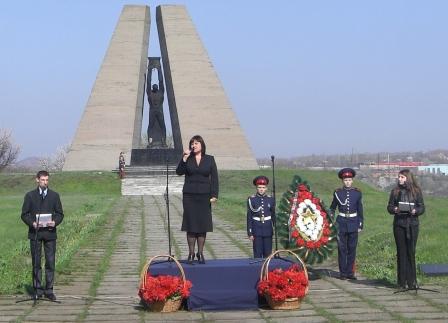 | После торжественного открытия мероприятия, теплых слов в адрес ветеранов депутатами Молодёжного парламента на грудь им были приколоты символы Победы – Георгиевские ленты, а к Мемориалу были возложены венки в память о погибших. Ведь только в нашем городе за период оккупации было уничтожено около 14 тысяч человек, из которых около 3500 человек были сброшены в шурф шахты им. Красина.
