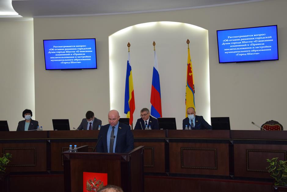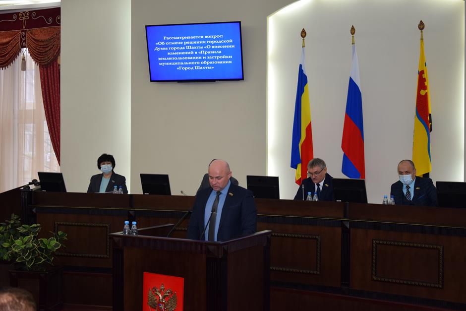 В рамках 5-го вопроса (по результатам поступившего протеста прокурора города) депутаты проголосовали за отмену решения городской Думы города Шахты «О внесении изменений в «Правила землепользования и застройки муниципального образования «Город Шахты», принятого 28 сентября 2021 года.