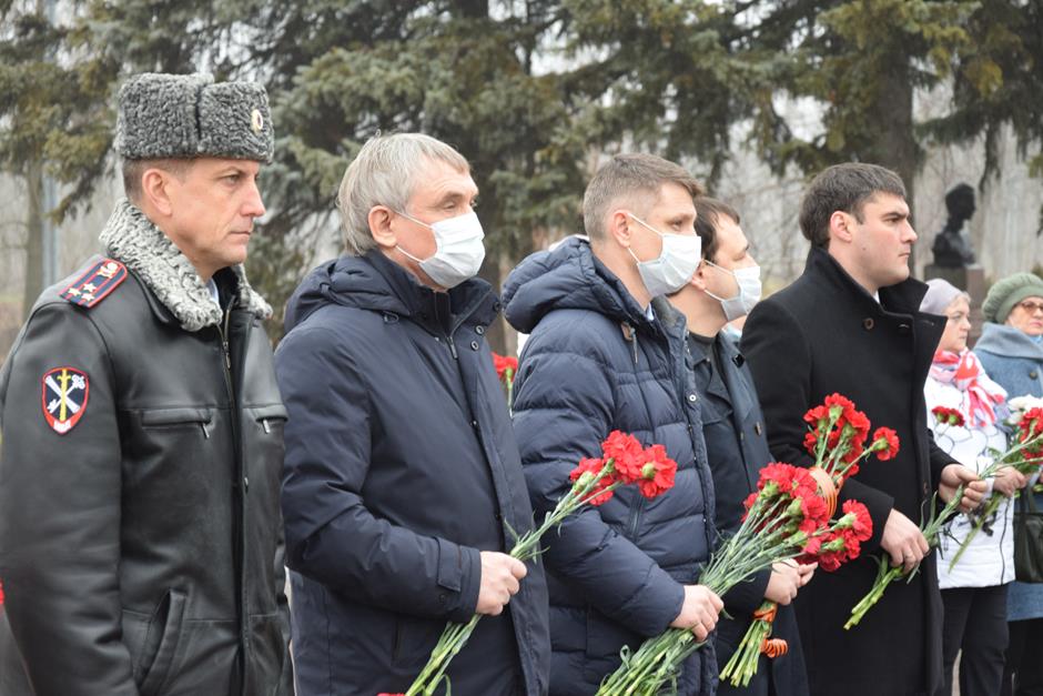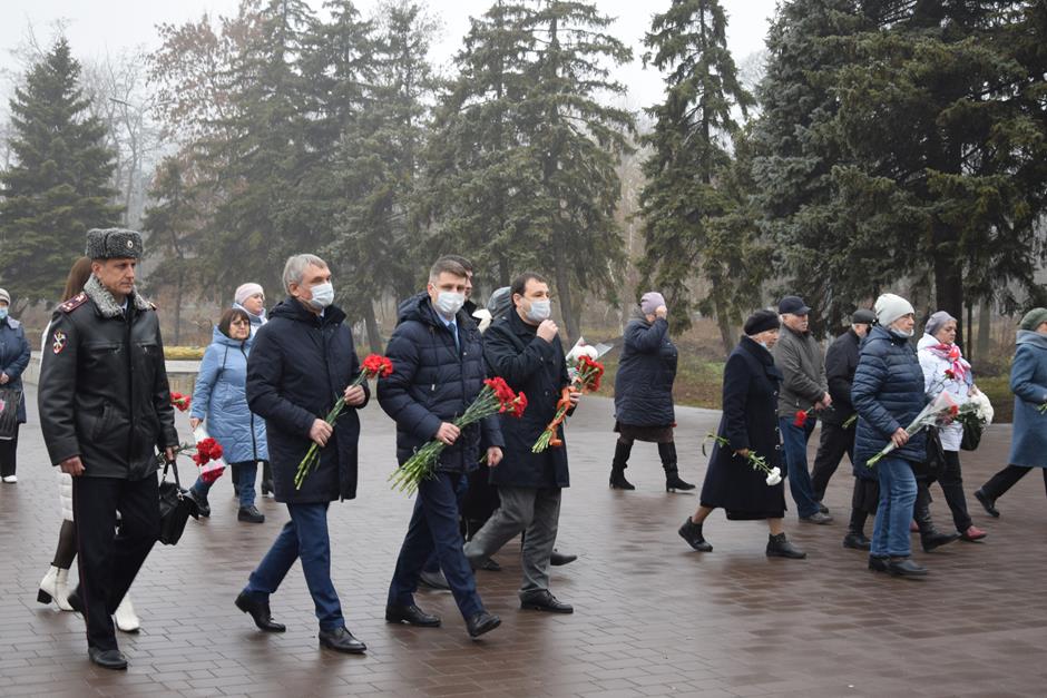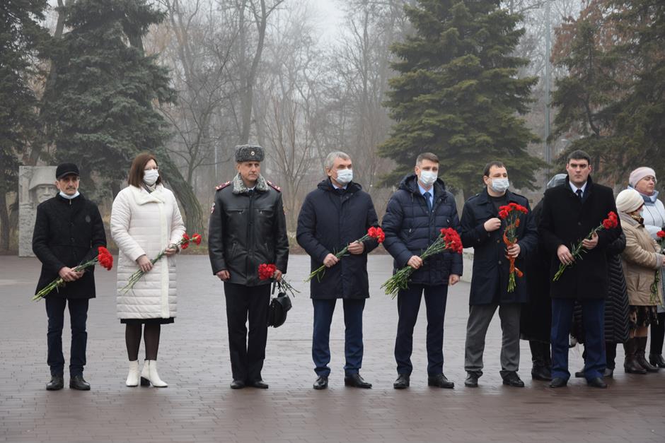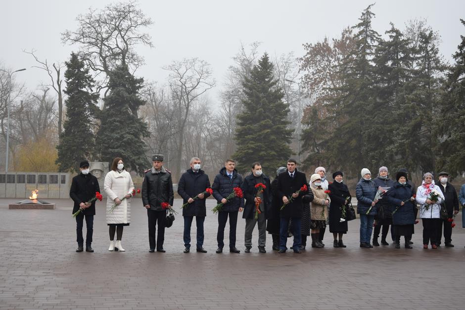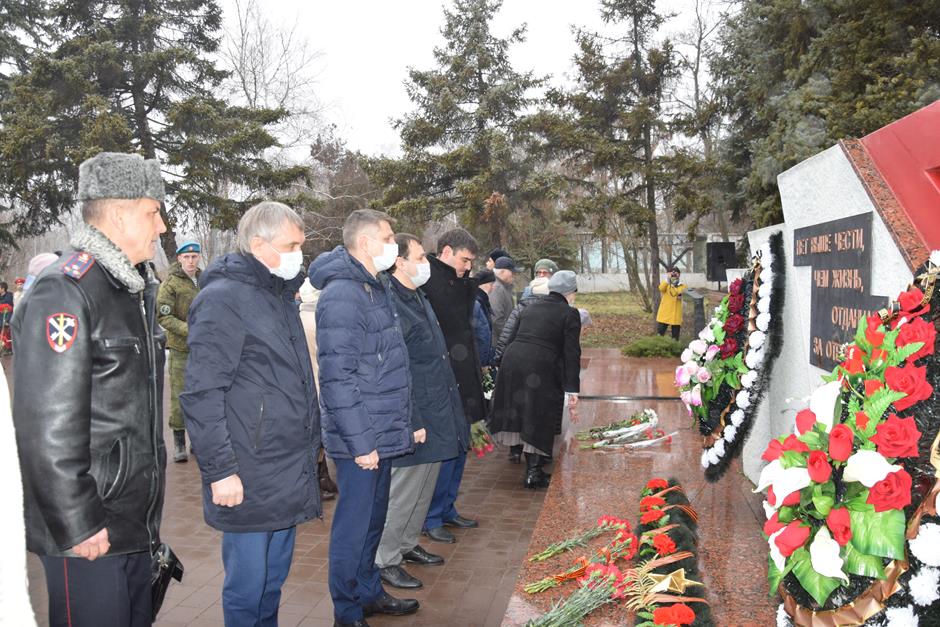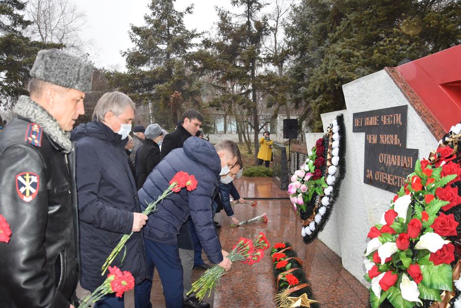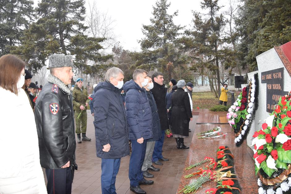 В церемонии возложения гирлянды, венков и цветов приняли участие председатель городской Думы — глава города Шахты Андрей Горцевской, глава Администрации города Андрей Ковалев, прокурор города Владимир Болдырев, заместитель начальника УМВД России по г. Шахты Александр Болтенков, заместитель руководителя СО по городу Шахты СУ СК РФ по Ростовской области Сергей Вдовин, председатель городского Совета ветеранов Александр Пятаков, представители Союза солдатских матерей, воспитанники «Поста№1», общественность и молодежь.