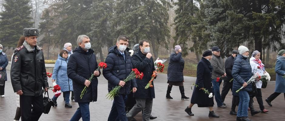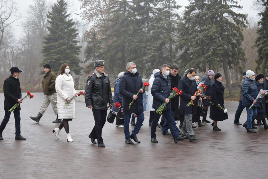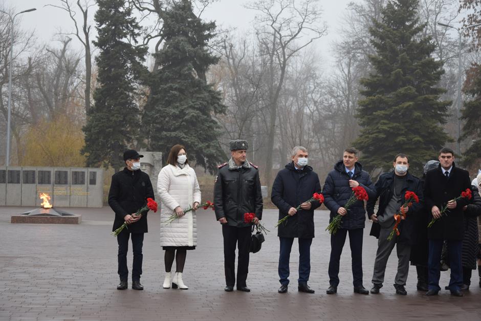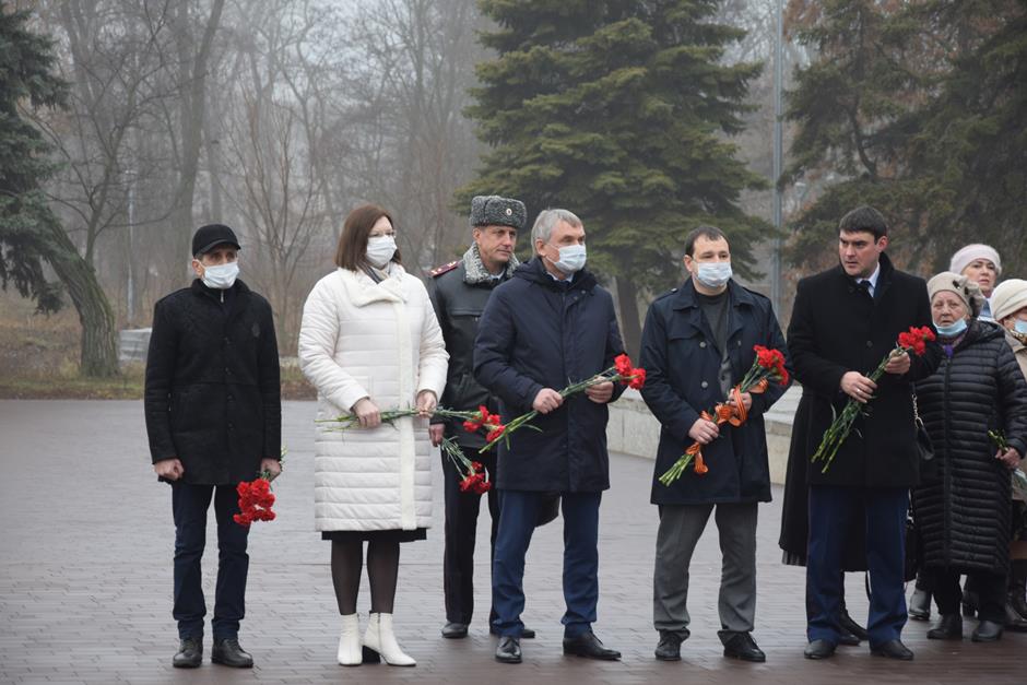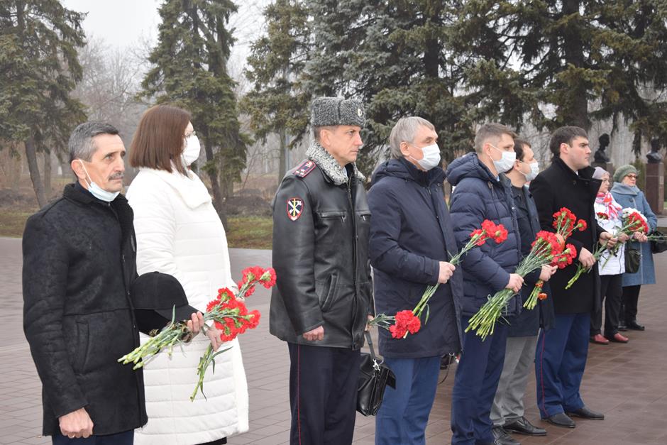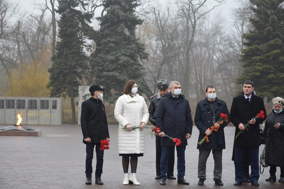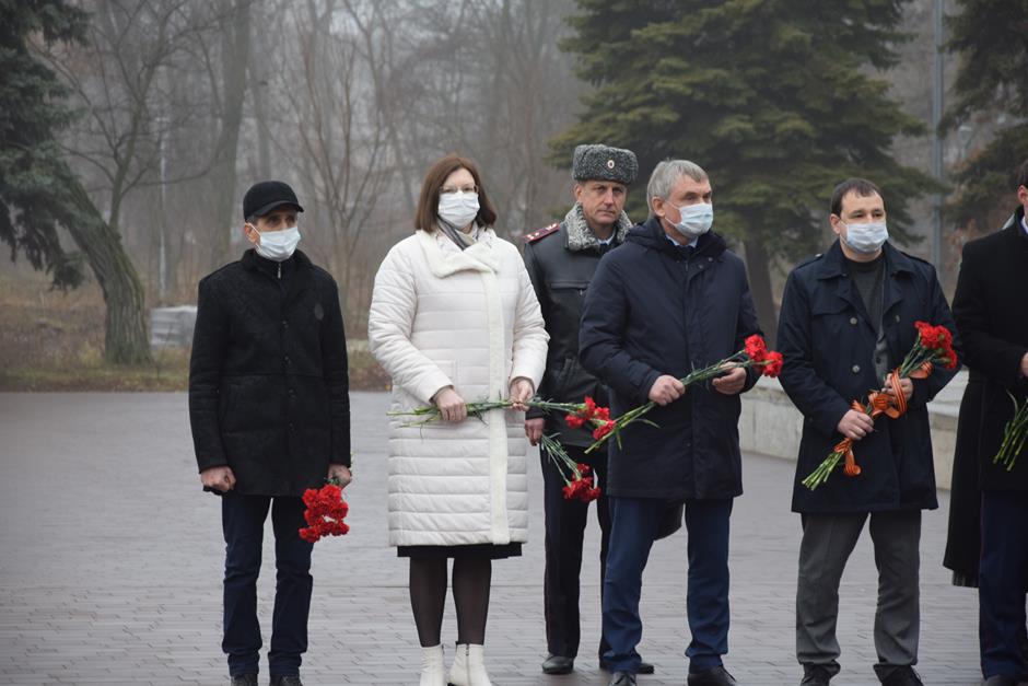 В церемонии возложения гирлянды, венков и цветов приняли участие председатель городской Думы — глава города Шахты Андрей Горцевской, глава Администрации города Андрей Ковалев, прокурор города Владимир Болдырев, заместитель начальника УМВД России по г. Шахты Александр Болтенков, заместитель руководителя СО по городу Шахты СУ СК РФ по Ростовской области Сергей Вдовин, председатель городского Совета ветеранов Александр Пятаков, представители Союза солдатских матерей, воспитанники «Поста№1», общественность и молодежь.