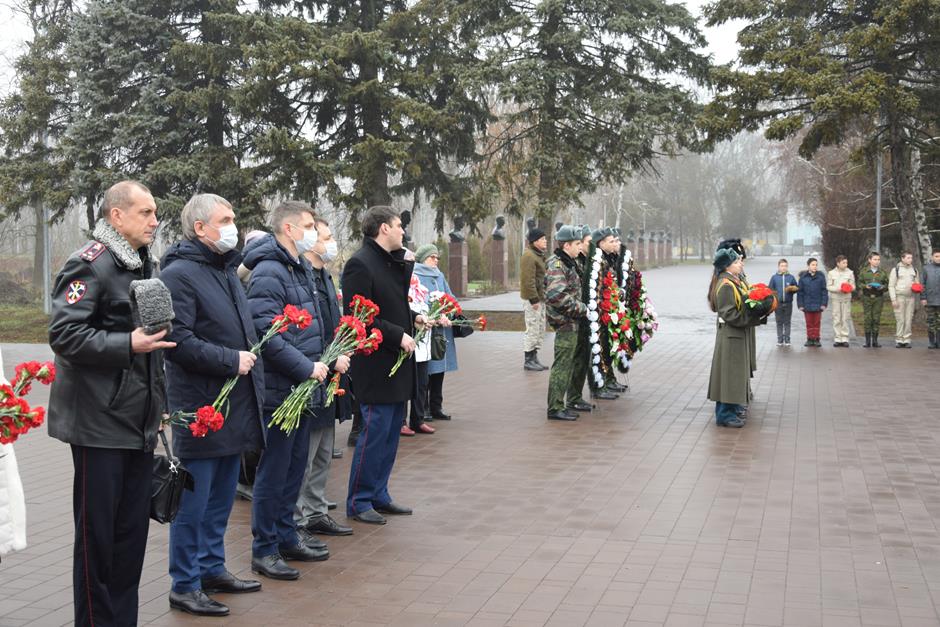 В День Героев Отечества в Шахтах состоялась церемония возложения цветов к памятному знаку военнослужащим, погибшим в ходе локальных войн