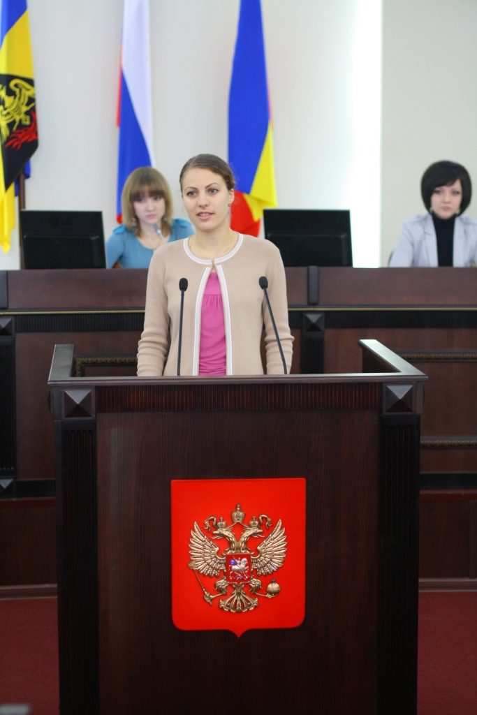 Председатель комитета по защите прав молодежи и нормотворческой деятельности Валерия Гарина представила проект положения турнира «Дебаты».