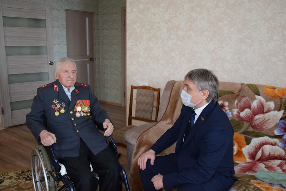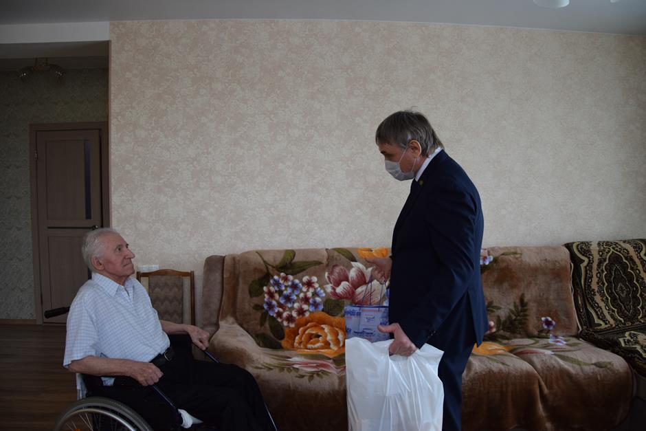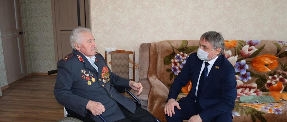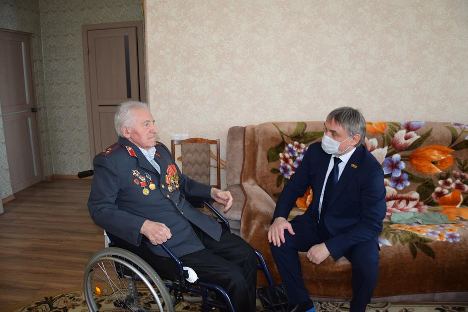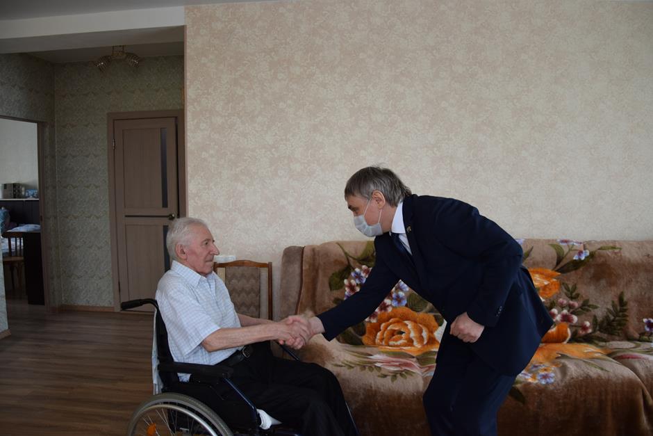 Ветерана Великой Отечественной войны Василия Мясникова с наступающими Новым Годом и Рождеством поздравил председатель городской Думы – глава города Шахты Андрей Горцевской