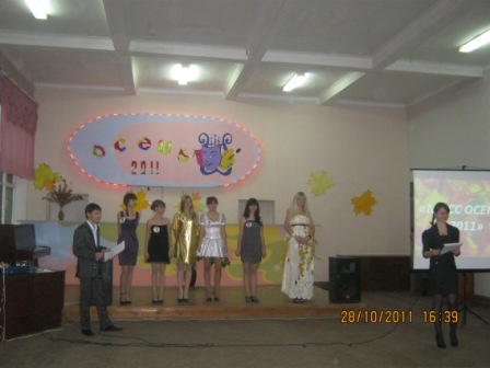 В конкурсе принимали участие учащиеся 8-11 классов. Девушки представили свои визитные карточки, продемонстрировали осенние наряды, сделанные своими руками. Также они рассказали о мире своих увлечений и продемонстрировали всем свою грацию и пластику в танцевальном конкурсе. Все присутствующие с восхищением и душевным трепетом следили за выступлениями девушек и выражали свой восторг аплодисментами. А оценивало конкурсанток жюри в составе депутатов МПШ — Смоляковой Екатерины, Гладырева Тимура, Головко Кирилла и учащейся гимназии им.А.С.Пушкина Нечаевой Екатерины. По итогам конкурсной программы жюри присудило титул «Мисс Осень — 2011» Осиповой Ларисе (ученица 11 класса). Приз зрительских симпатий получила Бусыгина Кристина (ученица 9 «а» класса). Остальные конкурсантки получили грамоты за участие и памятные подарки. В заключение осеннего бала для всех присутствующих была проведена дискотека.