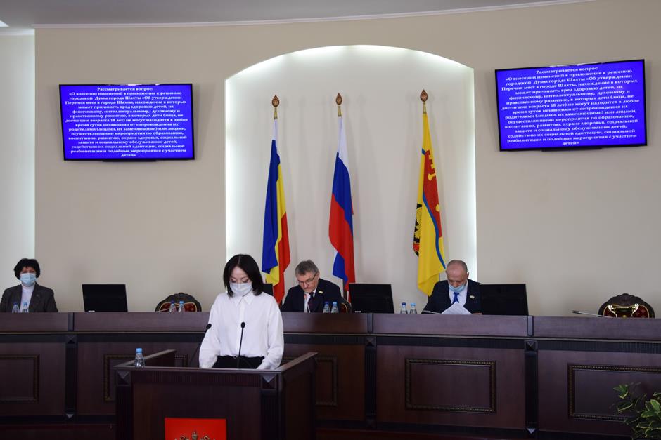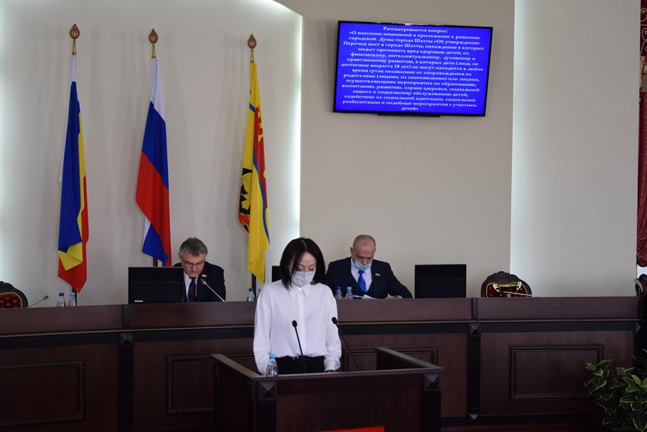 Единогласным стало решение по 6-ому вопросу — «О внесении изменений в приложение к решению городской Думы города Шахты «Об утверждении Перечня мест в городе Шахты, нахождение в которых может причинить вред здоровью детей, их физическому, интеллектуальному, духовному и нравственному развитию, в которых дети (лица, не достигшие возраста 18 лет) не могут находится в любое время суток независимо от сопровождения их родителями (лицами, их заменяющими) или лицами, осуществляющими мероприятия по образованию, воспитанию, развитию, охране здоровья, социальной защите и социальному обслуживанию детей, содействию их социальной адаптации, социальной реабилитации и подобные мероприятия с участием детей».