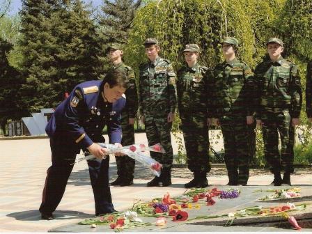 Анатолий Васильевич возложил также цветы на могилах героев Советского Союза Гончарова и Залепилова, рассказал молодым казакам о том, как более тридцати лет назад организовал здесь почетный караул, как готовил учащихся ПТУ № 34 к несению почетного караула, а теперь, спустя годы, занимается с ними