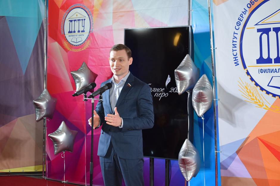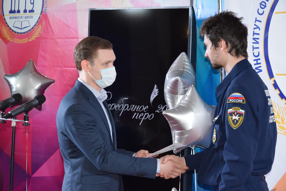 Перед началом церемонии чествования победителей конкурса «Серебряное перо» собравшихся поприветствовала кандидат в депутаты ЗСРО Ирина Жукова, пожелав студентам новых достижений. Вручение дипломов и наград состоялось в 8-ми номинациях: учебная деятельность, наука (технические, экономические, гуманитарные науки), общественная деятельность, культура, среднее профессиональное образование и спорт. Среди удостоенных поощрений – 4 депутата Молодежного парламента при городской Думе города Шахты: Виктория Бондарева, Александр Кривоусов, Кирилл Дмитриев и Марк Гарибян.