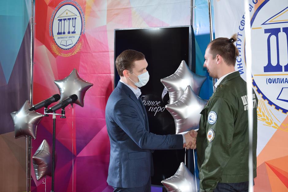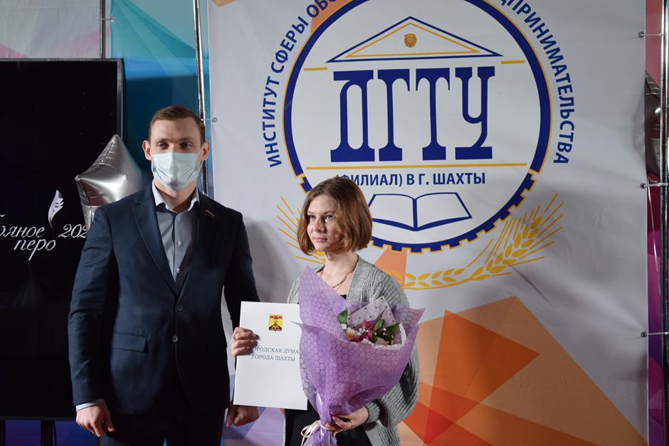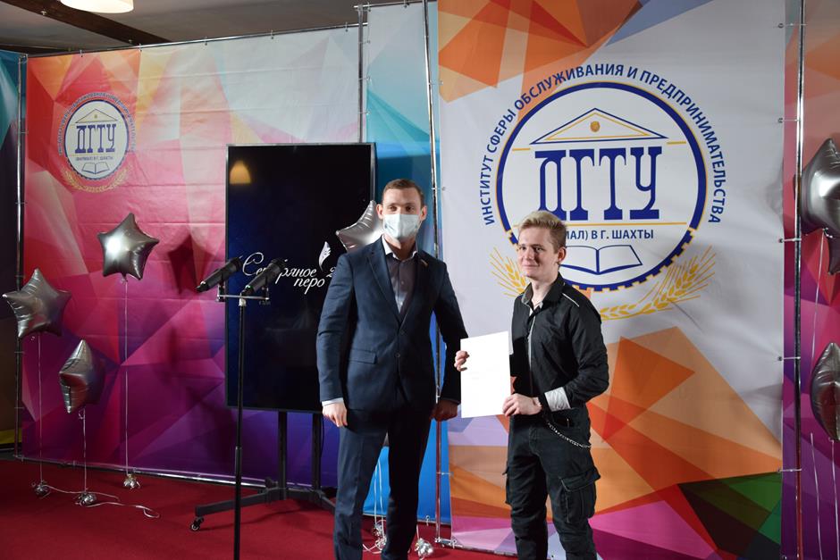 Студенчество – замечательный период в жизни человека, наполненный интересными событиями, открытиями, безграничными возможностями и традициями. В ИСОиП (филиала) ДГТУ в г. Шахты ежегодно проводят конкурс «Серебряное перо», по итогам которого чествуют лучших из лучших. Церемонию награждения обучающихся, отличившихся в сферах науки, культуры, волонтерства и спорта открыл директор ВУЗа Сергей Страданченко. В чествовании приняли участие глава Администрации города Андрей Ковалев, депутат городской Думы города Шахты, помощник депутата Государственной Думы РФ Екатерины Стенякиной Аркадий Горцевской. Он поздравил ребят с успехами и вручил Благодарственные письма. Парламентарием федерального уровня отмечены представители факультета «Техника и технологии» Александр Кривоусов и Виктор Диденко, а также Виктрория Бондарева из колледжа экономики и сервиса. От имени председателя городской Думы – главы города Шахты Андрея Горцевского и всего депутатского корпуса поощрены за неравнодушие, активную жизненную позицию и волонтерскую помощь гражданам, прибывающим из Луганской и Донецкой народных республик, удостоены студенты факультета «Экономика, сервис и предпринимательство»: