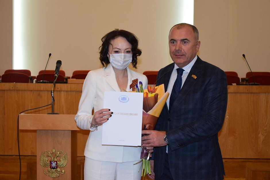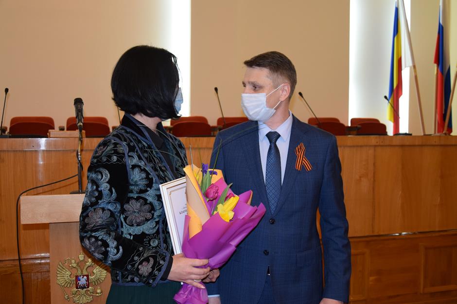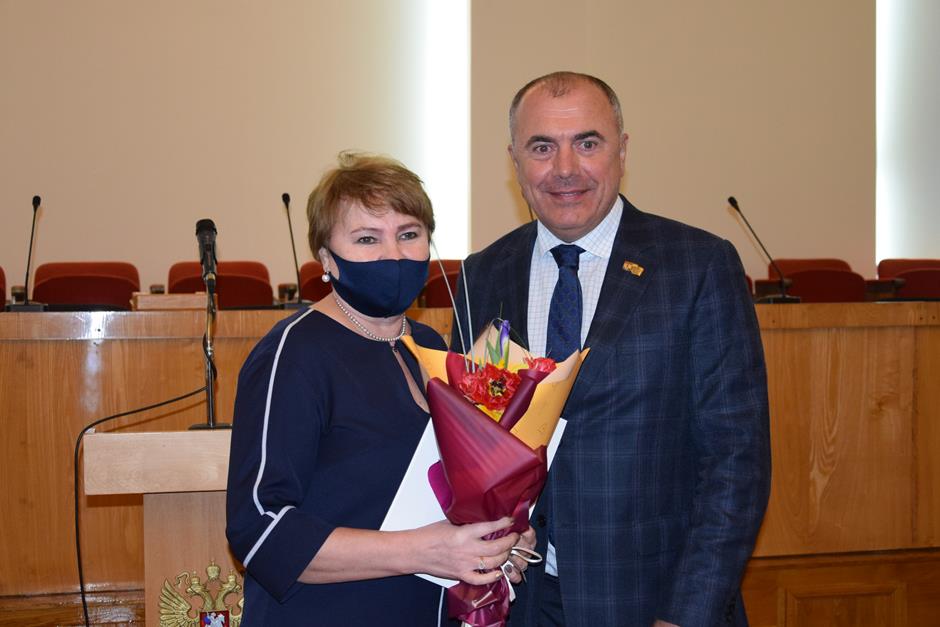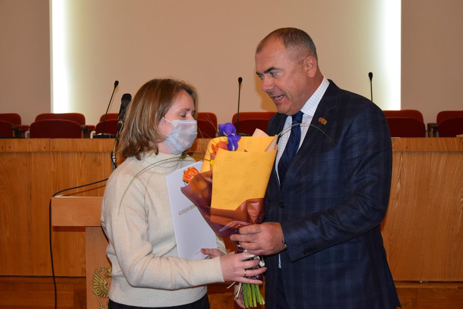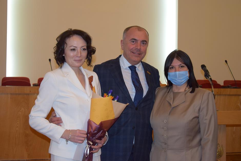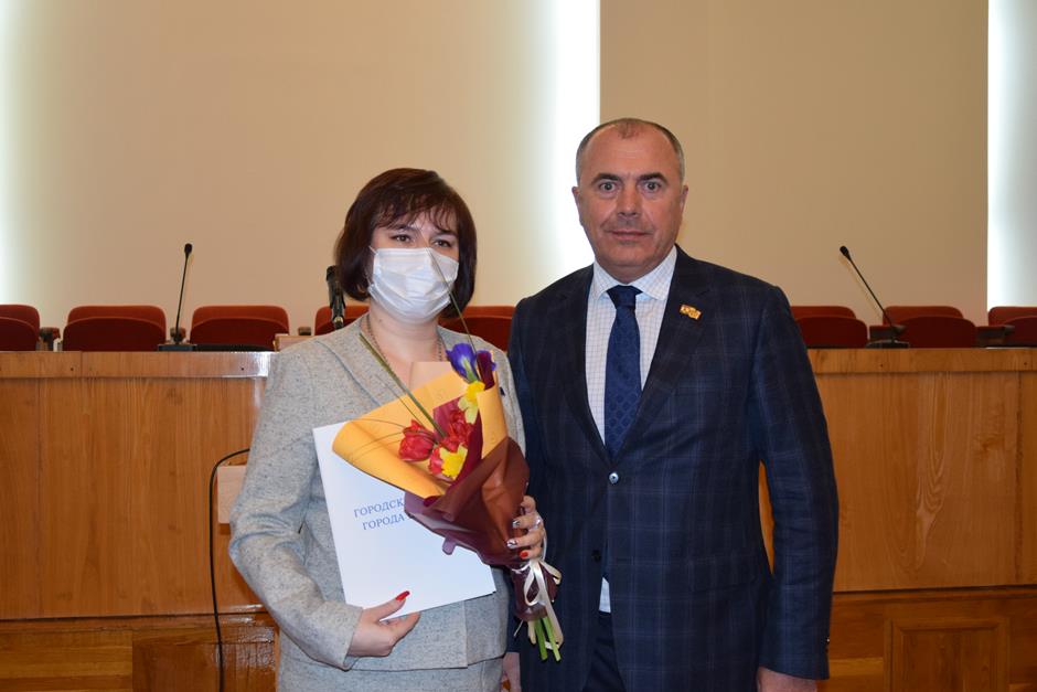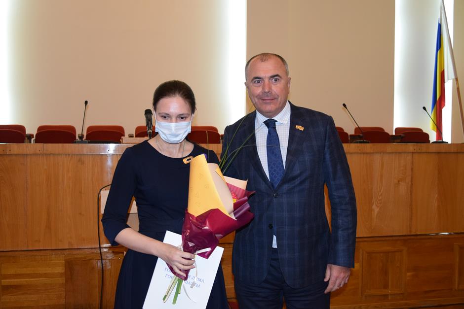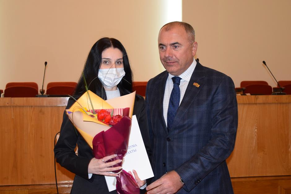 Церемонию награждения продолжил председатель комитета по экономической политике, промышленности, инвестициям и предпринимательству городской Думы города Шахты Тенгиз Хиникадзе. Благодарственными письмами депутата Государственной Думы России Екатерины Стенякиной он поздравил: