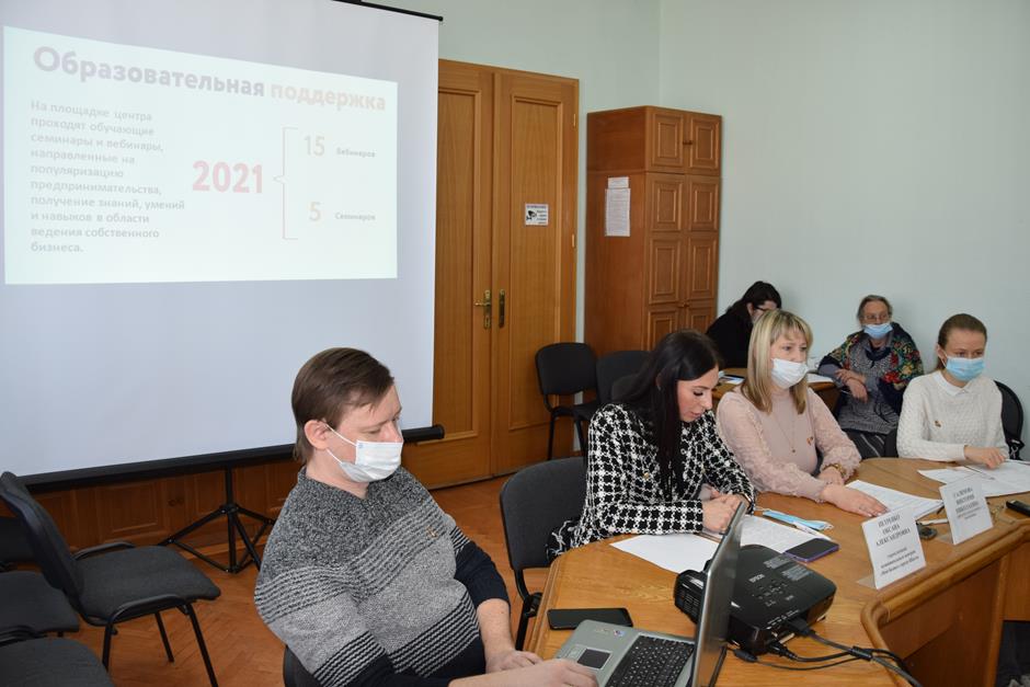 О результатах деятельности Центра «Мой бизнес» в рамках национального проекта «Малое и среднее предпринимательство и поддержка индивидуальной предпринимательской инициативы» за 2021 год (вопрос №3) рассказала руководитель учреждения Оксана Петренко.