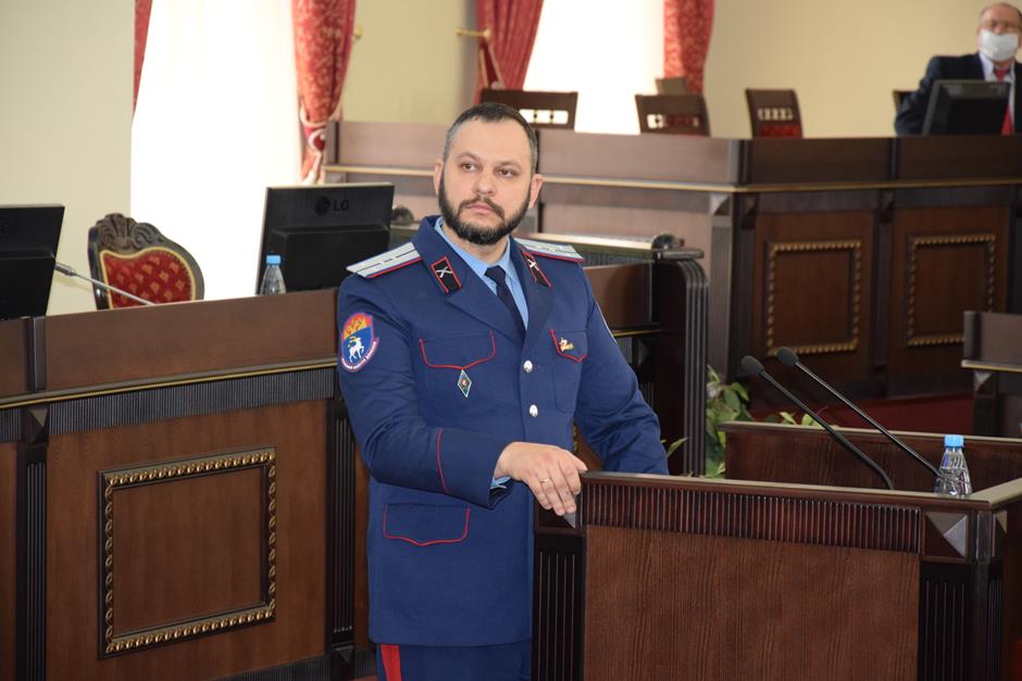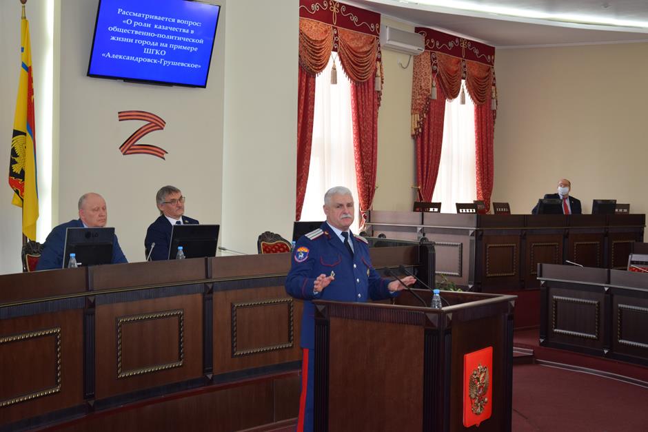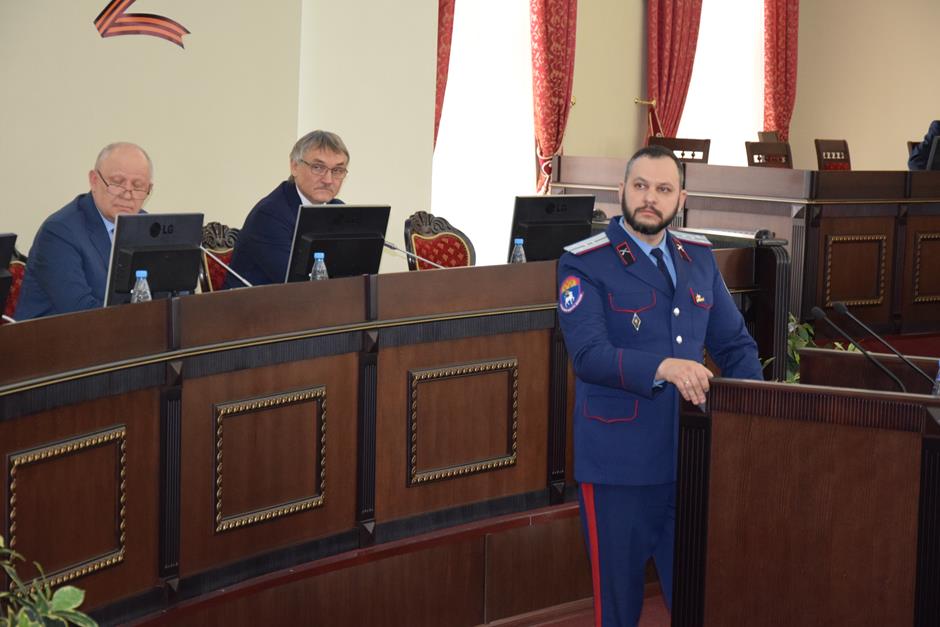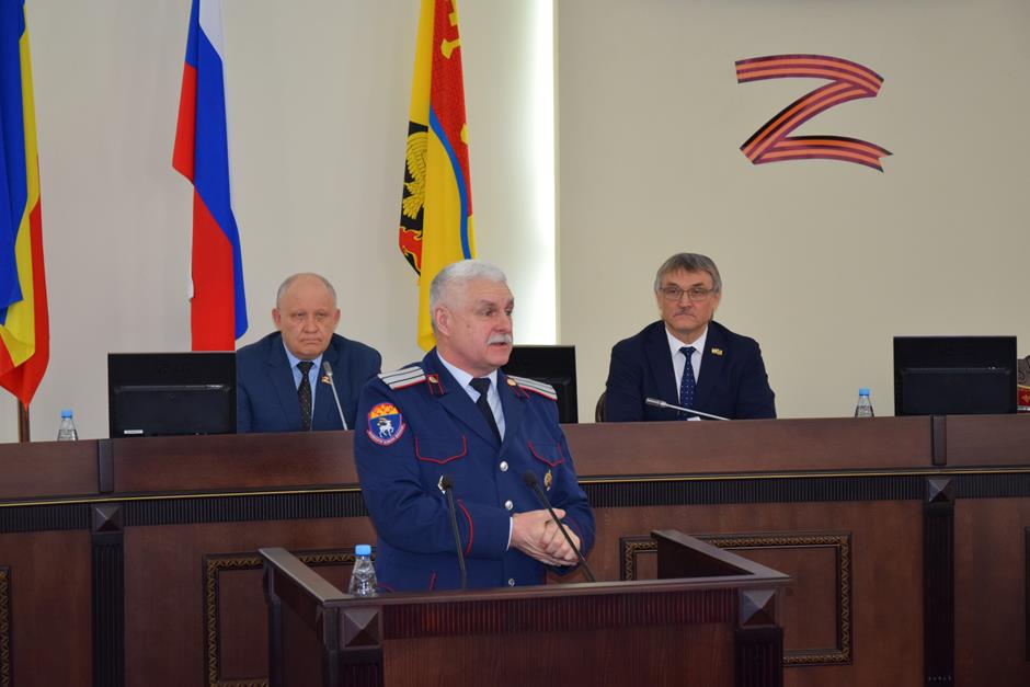 Докладчика по данному вопросу дополнил Виталий Бобыльченко — атаман войскового казачьего общества «Всевеликое войско Донское», казачий полковник, директор ГБОУ РО «Шахтинский генерала Я.П. Бакланова казачий кадетский корпус», член Общественной палаты города.