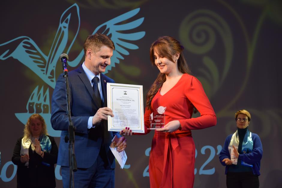 Победитель номинации «Педагогический дебют» — Анна Пятибратова удостоена Благодарственного письма и поздравления парламентария Законодательного Собрания Ростовской области Ирины Жуковой.
