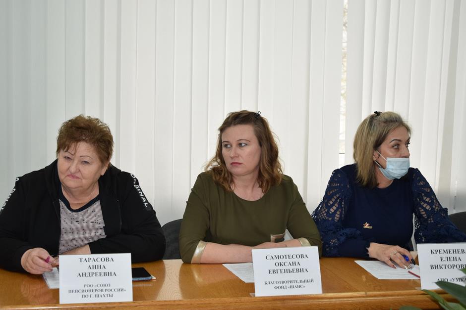 Первой о направлениях работы и проблемах, с которыми приходится сталкиваться, рассказала руководитель Шахтинской общественной организации инвалидов по зрению Ирина Капшук. «Общество слепых»(филиал областной структуры) насчитывает в городе свыше 500 человек. Есть проблемы с трудоустройством, с обеспечением условий в рамках «доступной среды», с финансово-хозяйственной деятельностью организации, которая не является юридическим лицом и не имеет законных оснований зарабатывать и получать гранты на развитие. Возможные пути изменения ситуации искали совместно с другими участниками заседания в ходе обсуждения.