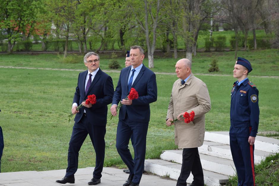 В памятном мероприятии, посвященном бессмертному подвигу советского народа, освободившего мир от фашизма, и сохранению исторической памяти, приняли участие председатель городской Думы-глава города Шахты Андрей Горцевской, депутат по 17-му избирательному округу Александр Петин, первый заместитель главы Администрации Алексей Тушминцев, заместитель главы Администрации Ольга Тхак, заместитель председателя Контрольно-счетной палаты города Наталья Колодько, председатель Общественной палаты Александр Скориков, председатель Совета ветеранов города Александр Пятаков, воспитанники кадетского корпуса и жители города.