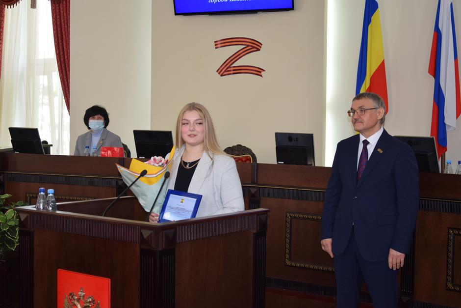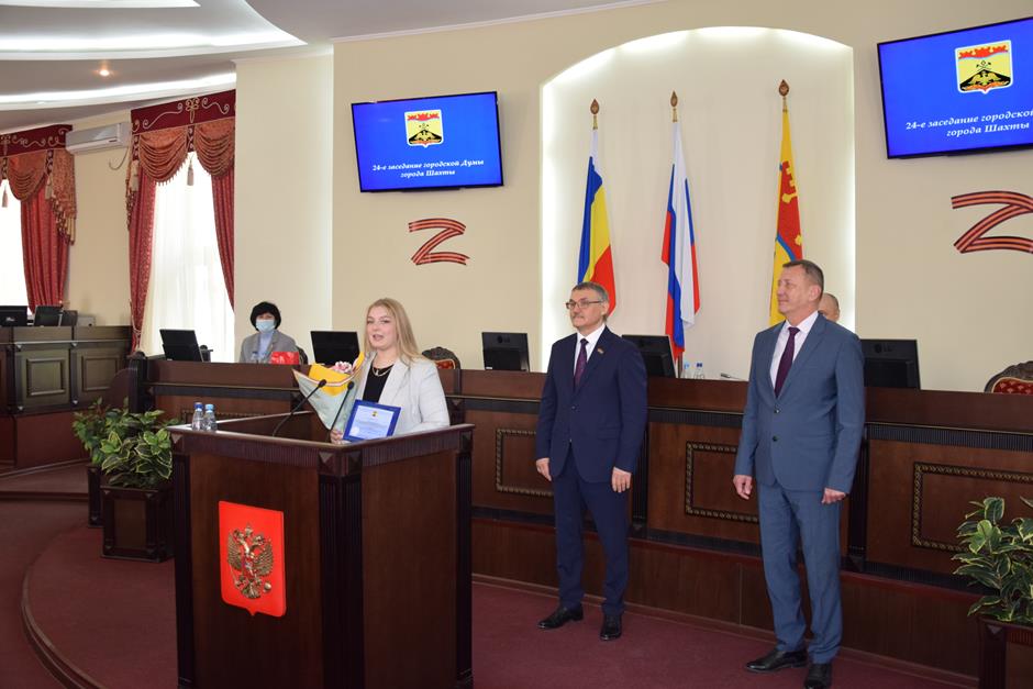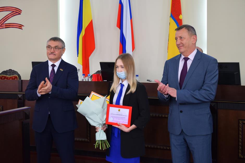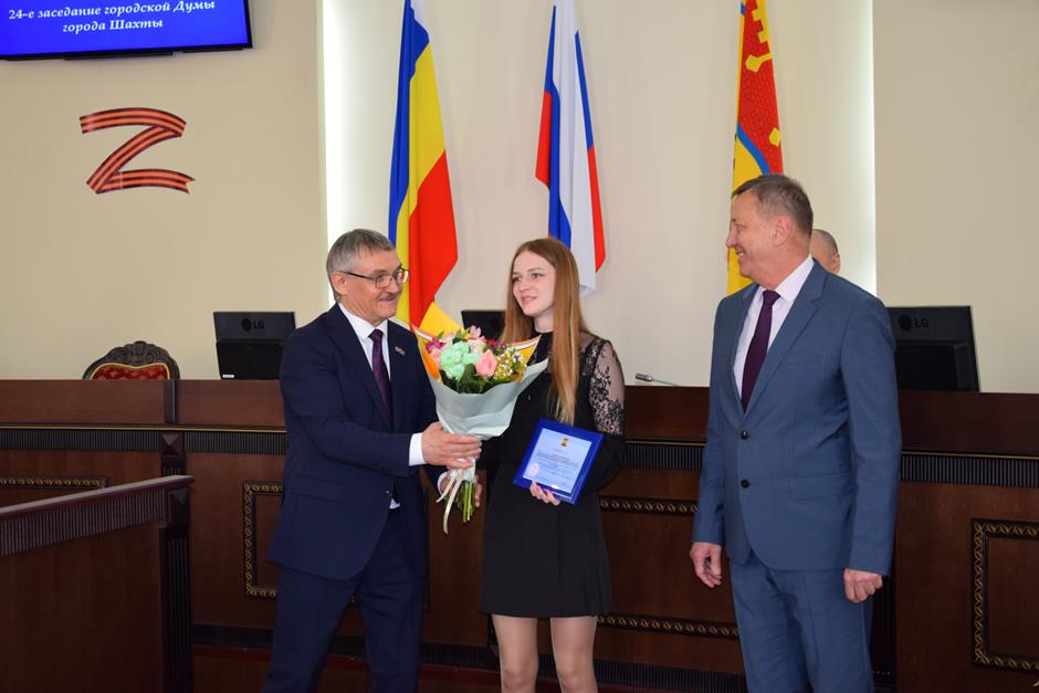 Апрельская церемония награждения: на 24-ом заседании депутатского корпуса вручены Благодарственные письма городской Думы и сертификаты о назначении именных стипендий студентам города Шахты
