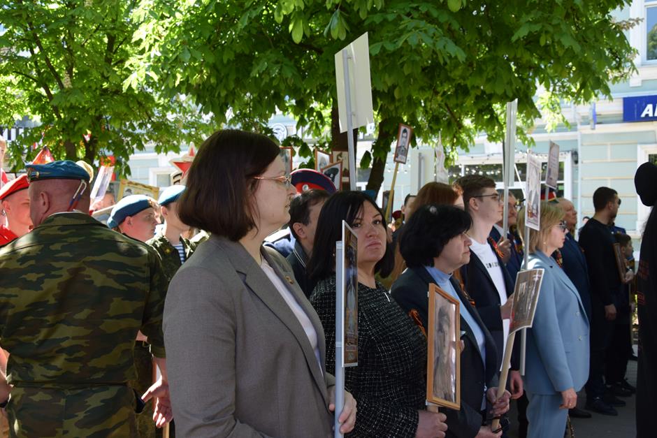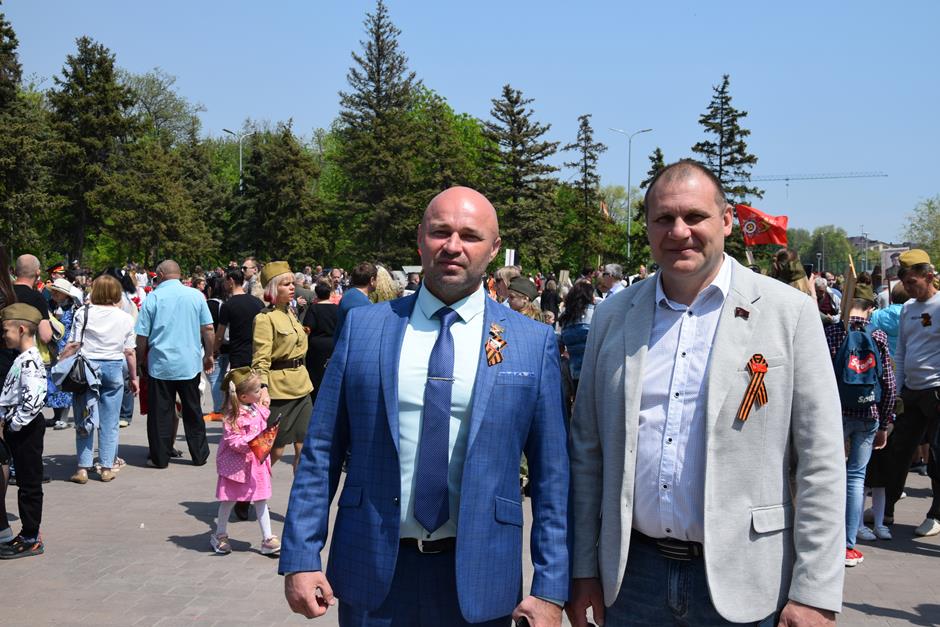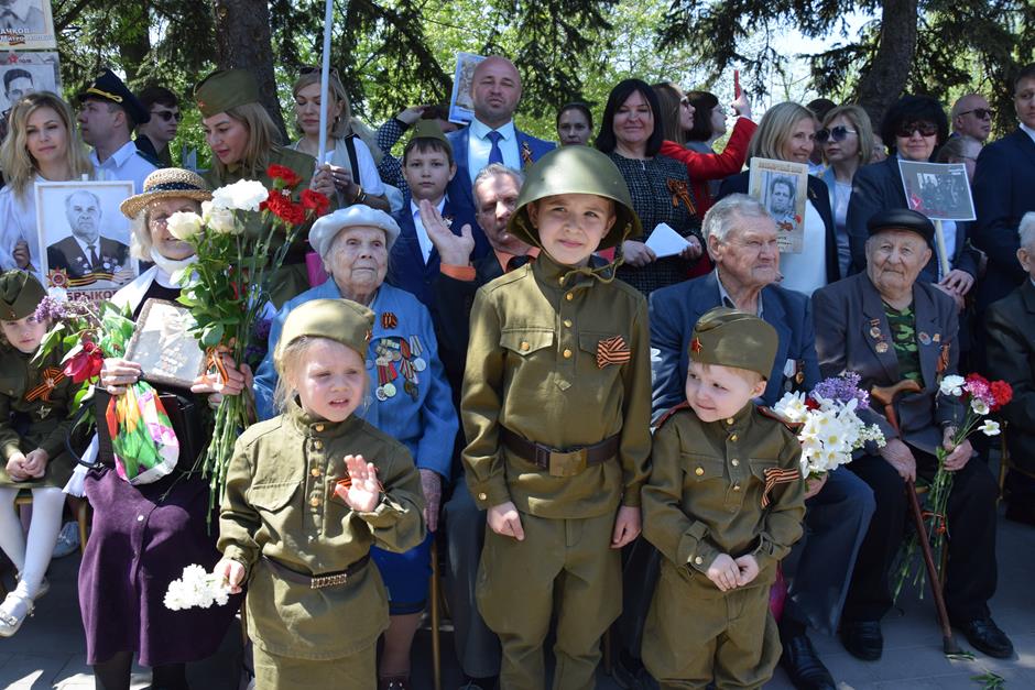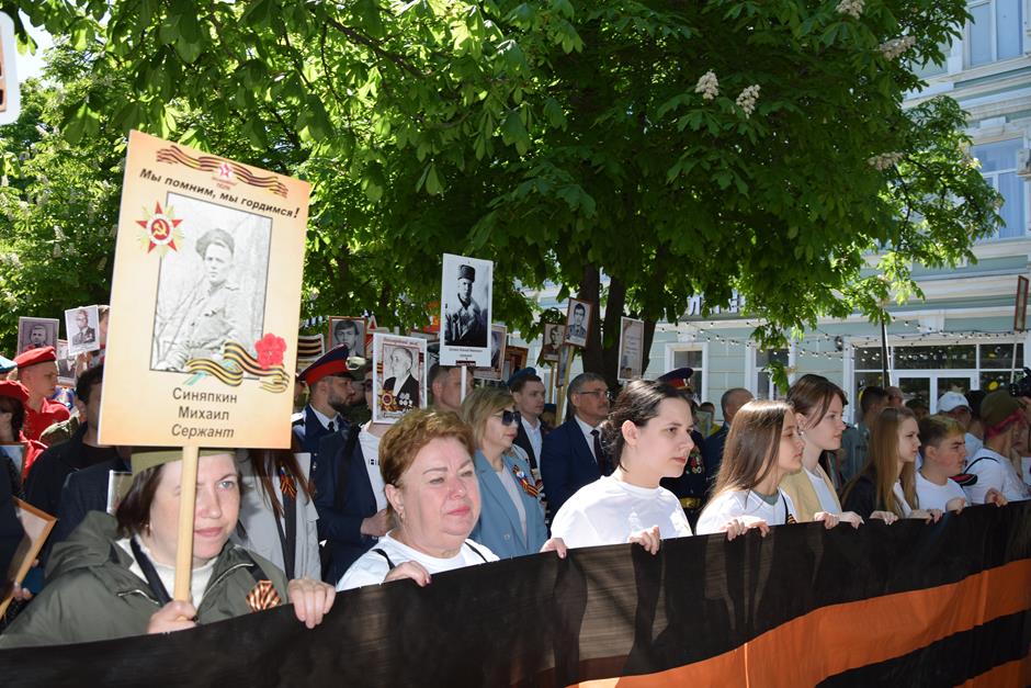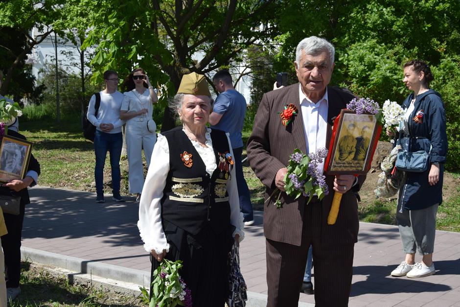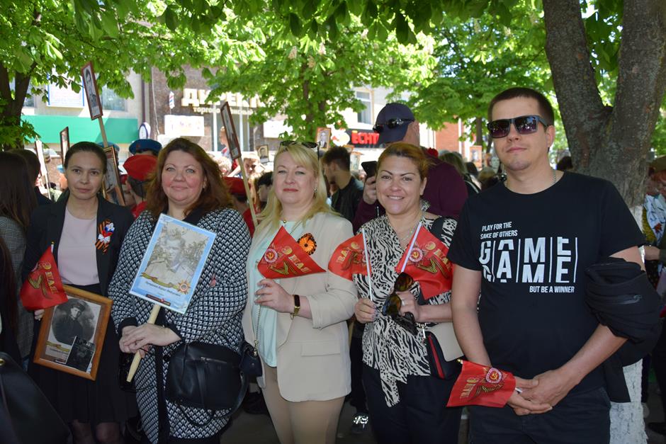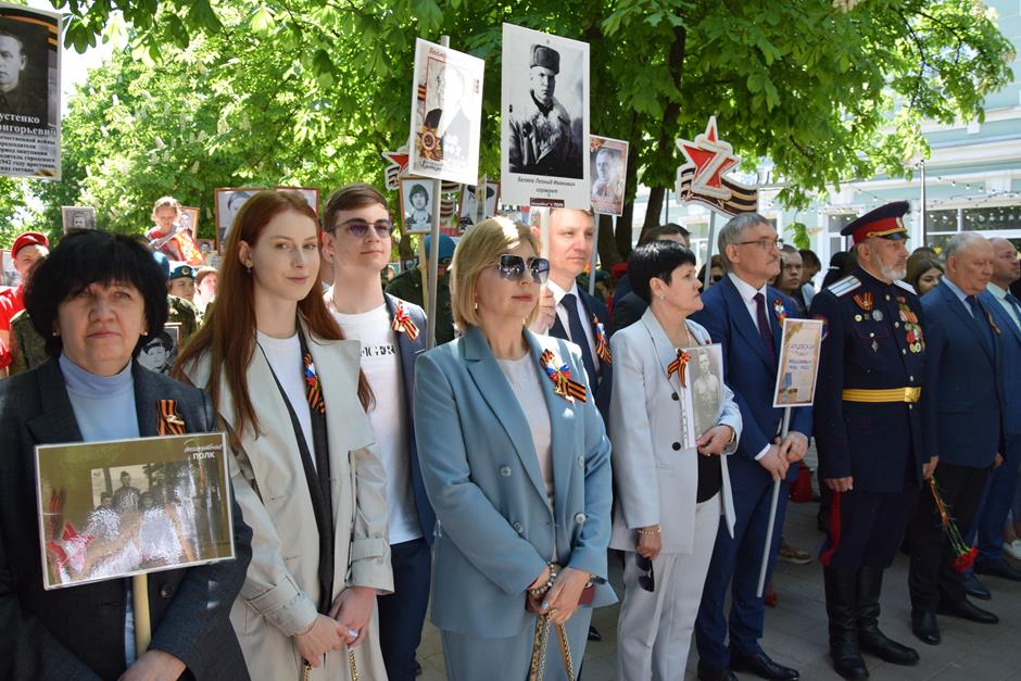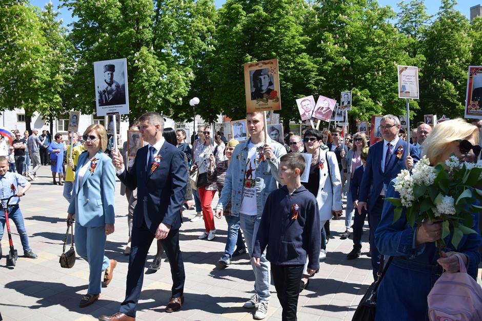Традиционное возложение цветов состоялось также у памятника Солдату на площади 40-летия Победы. Многочисленные ряды «Бессмертного полка» в этом году прошли по улице Шевченко и центральной аллее Александровского парка. Направлял движение автомобиль с ветеранами Великой Отечественной войны. Завершилось шествие митингом у Вечного огня. Перед собравшимися выступили глава Администрации Андрей Ковалев, депутат ЗСРО Ирина Жукова (передавшая Совету ветеранов письма-поздравления детей Донбасса), председатель городской Думы – глава города Андрей Горцевской, военный комиссар по городу Шахты и Октябрьскому (с) району Иван Вансович. В этом году участникам патриотического мероприятия было представлено «Полотно памяти», созданное из 16 тысяч лоскутов с фамилиями не вернувшихся с полей сражений и пропавших без вести в годы Великой Отечественной войны шахтинцев. Память погибших героев почтили минутой молчания. К братской могиле возложили венки и цветы.