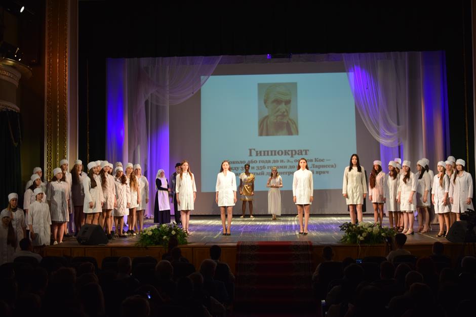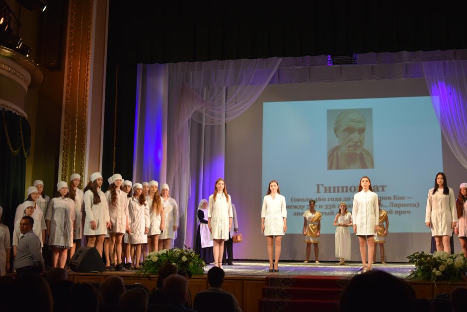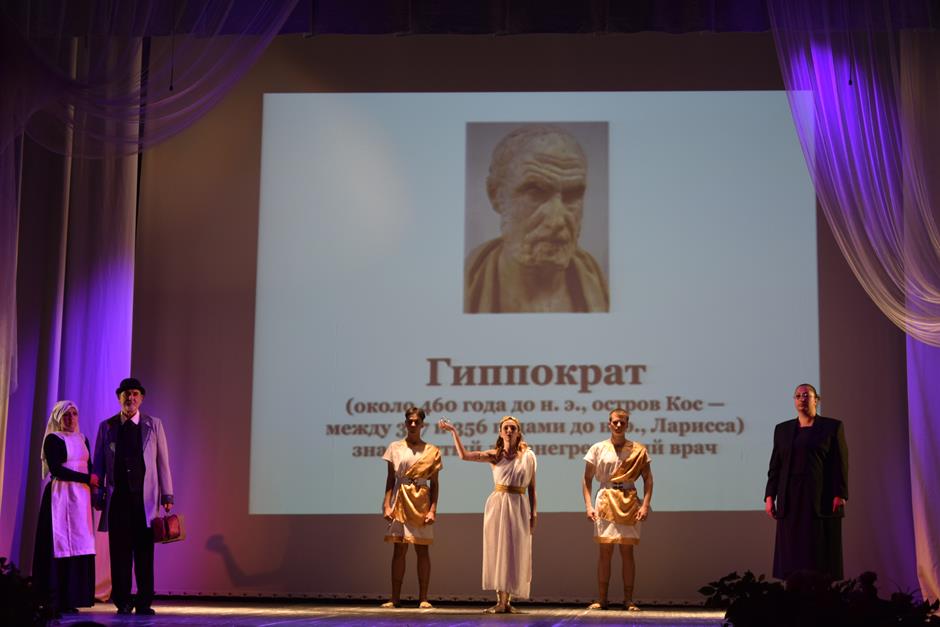 Торжественное мероприятие, посвященное Дню медицинского работника, состоялось в городском драмтеатре. Открыла праздничное собрание историческая зарисовка «Клятва Гиппократа». Вместе с артистами зрители стали путешественниками во времени: сначала перенеслись в Древний Рим, потом в 19 век и эпоху СССР… И по возвращении в наши дни приступили к чествованию лучших работников городского здравоохранения. С поздравлениями к ним обратились глава Администрации Андрей Ковалев, председатель комитета Законодательного собрания Ростовской области по взаимодействию с общественными объединениями, молодежной политике, физической культуре, спорту и туризму Ирина Жукова, вручившая награды ЗСРО заведующему неврологическим отделением для больных с острым нарушением мозгового кровообращения, врачу — неврологу БСМП им.В.И. Ленина Борису Бруку и врачу – детскому хирургу Детской городской больницы Владиславу Ерёмину.