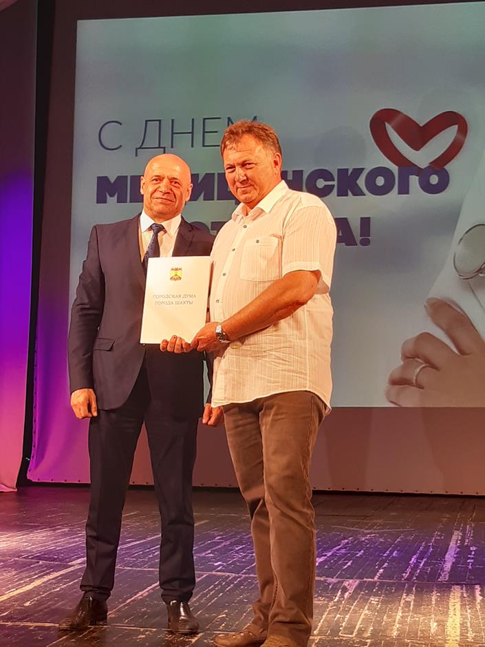 От имени председателя городской Думы – главы города Шахты Андрея Горцевского и коллег-депутатов медицинское сообщество поблагодарил за преданность такой трудной и напряженной, но самой необходимой, гуманной, человечной и мирной профессии и.о. председателя городской Думы Константин Корнеев. За многолетний и добросовестный труд, личный вклад в развитие здравоохранения города Благодарственными письмами городской Думы города Шахты поощрены: