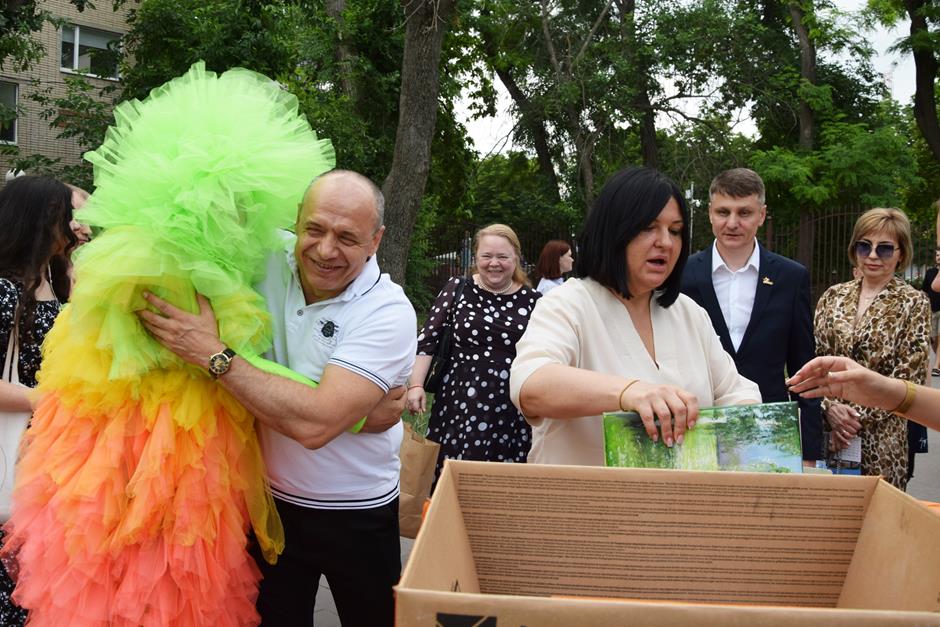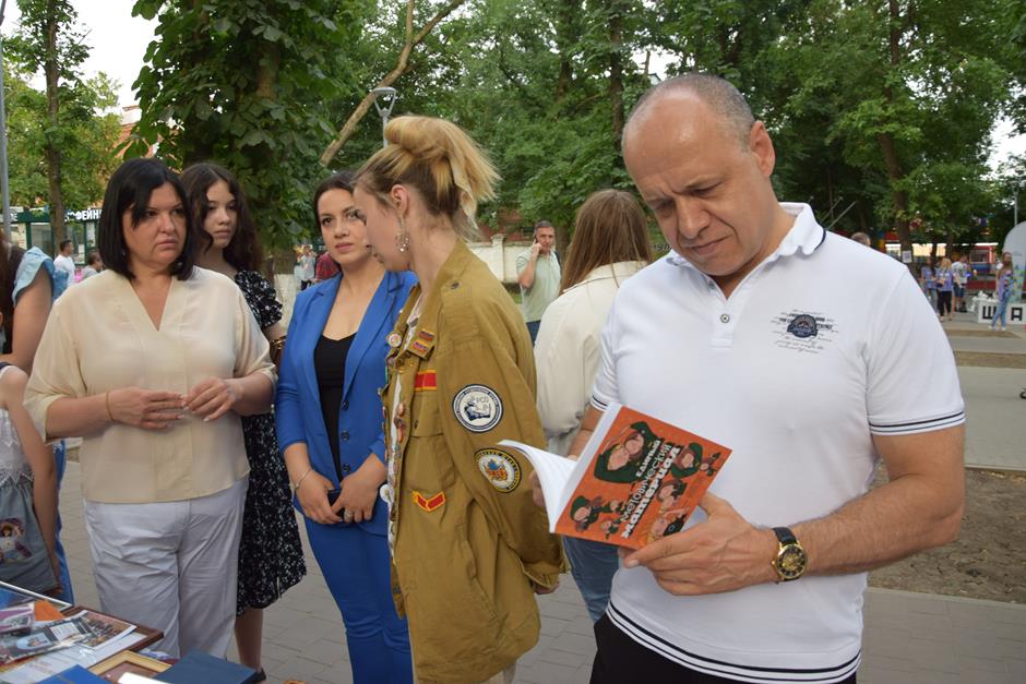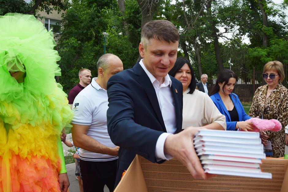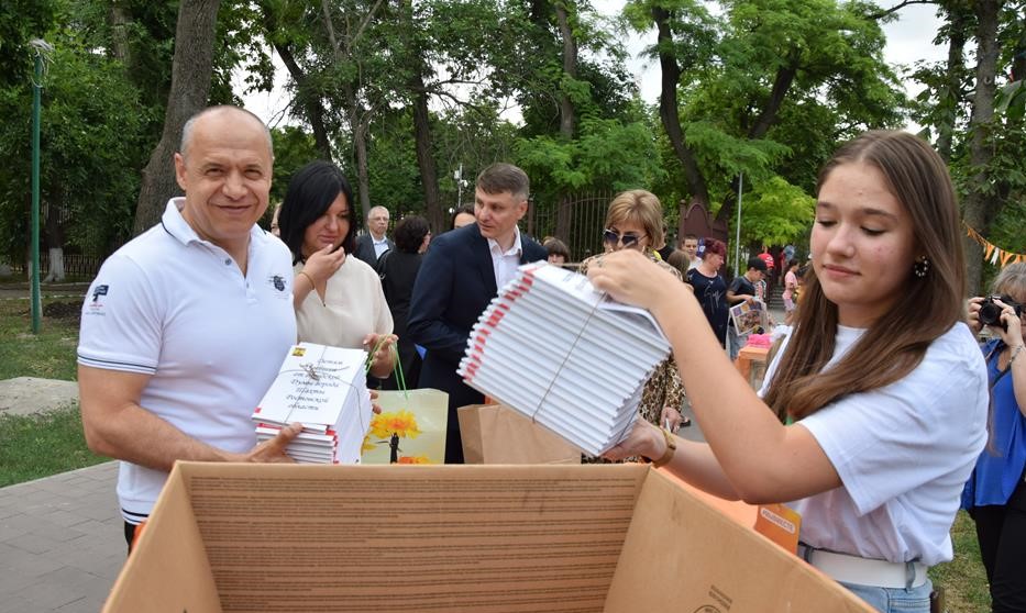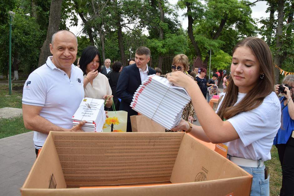 Депутаты городской Думы также приняли участие во всероссийской акции «Книгодарение для мира. Восстановление библиотечного фонда ЛНР И ДНР». Специальную «оранжевую коробку» пополнил новыми печатными изданиями для детей Донбасса заместитель председателя городской Думы города Шахты Константин Корнеев. Депутаты Тенгиз Хиникадзе, Аркадий Горцевской и Константин Чередниченко обеспечили сладкими призами и памятными подарками активистов тематического квеста, организованного Молодежным парламентом при городской Думе города Шахты.