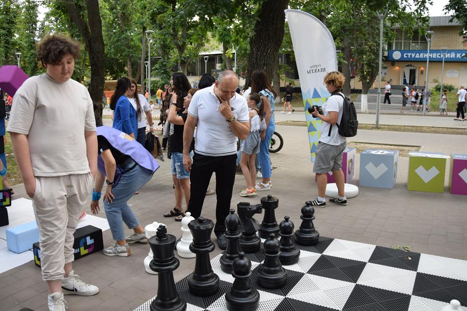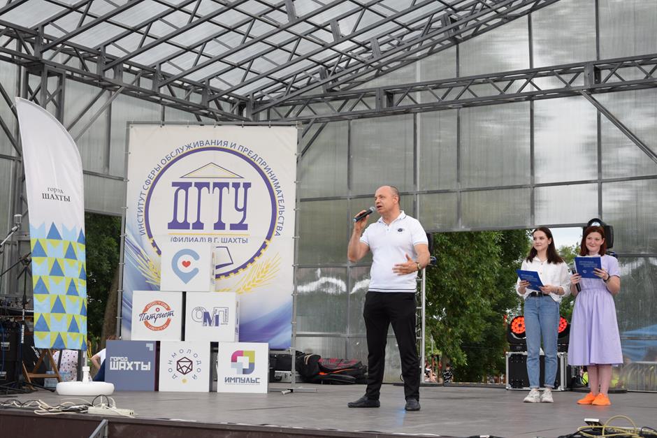 Модельное шоу от Донского государственного университета, «Аллея профессий», «Квартирник» -лаунж-зона для творческой молодежи, презентации предпринимателей, мастер классы казакови ВДПО, танцевальный баттл, а также площадка с гигантскими шахматами, ростовой дженгой, стойкой добровольцев и специальной фотозоной от муниципального молодежного многофункционального центра «Импульс». Все эти площадки работали оживленно в течение двух часов. А далее праздничную программу продолжил концерт, открыли который почетные гости праздника: председатель комитета Законодательного Собрания Ростовской области по взаимодействию с общественными объединениями, молодежной политике, физической культуре, спорту и туризму Ирина Жукова, глава Администрации города Андрей Ковалев, заместитель председателя городской Думы города Шахты Константин Корнеев, помощник депутата Государственной Думы РФ Екатерины Стенякиной Аминат Гасанова.