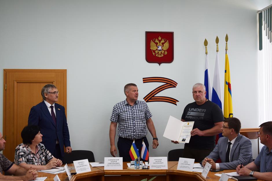 В начале заседания председатель комитета по ЖКХ Андрей Ермаков вручил Благодарственное письмо городской Думы индивидуальному предпринимателю Владимиру Пичугину за организацию работ по благоустройству сквера, примыкающего к объекту культурного наследия регионального значения «Здания начального училища на Власовском руднике товарищества «Е.Т. Парамонов сыновья». Награжденный, в свою очередь, поблагодарил депутатский корпус за внимание, Департамент городского хозяйства и ГУП РО «УРСВ» — за содействие, выразив надежду и желание сотрудничать на благо шахтинцев и в дальнейшем.