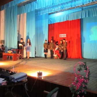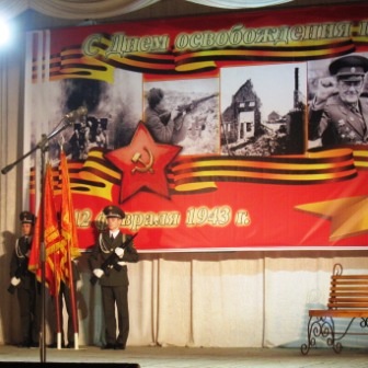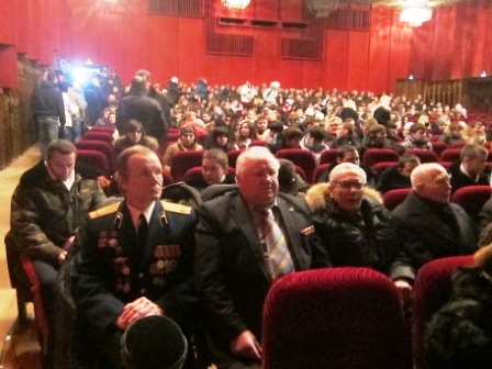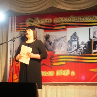А потом в стенах ГДК состоялось поздравление ветеранов, жителей города с 69-годовщиной освобождения города и театрализованное представление «Войной испепелённые года». К присутствующим обратились с речью мэр города Д.И.Станиславов, председатель городской Думы И.А.Жукова, депутат М.И.Щаблыкин, военный комиссар И.И.Вансович, председатель Совета ветеранов А.А.Галушко. Ирина Анатольевна представила новый сборник стихов и песен «Вахта памяти» Т.И.Рябинкиной, с посвящением светлой памяти защитников России, воинов Советского Союза, чья кровь пролилась на фронтах Великой Отечественной войны. Сборник вручили ветеранам.