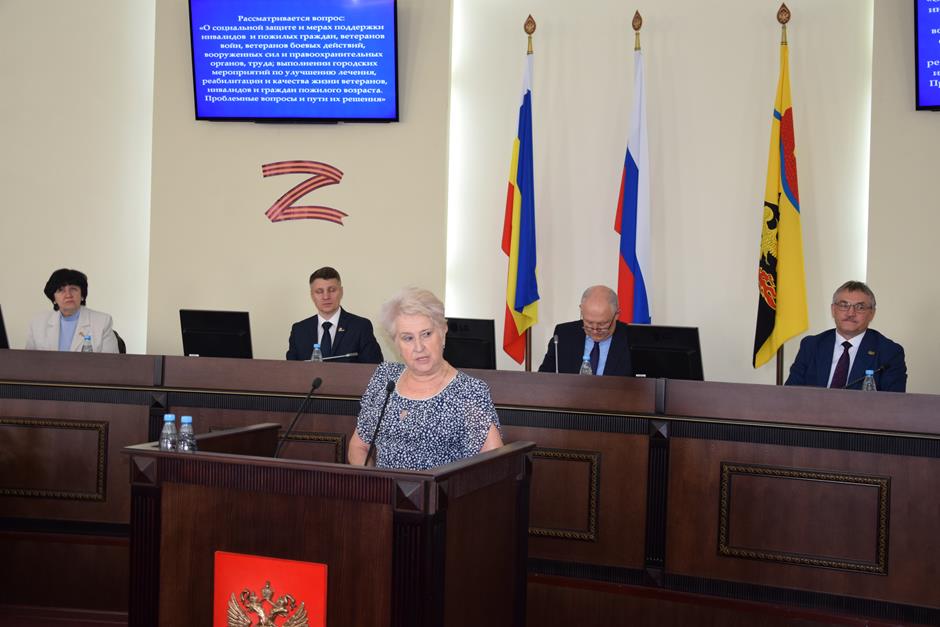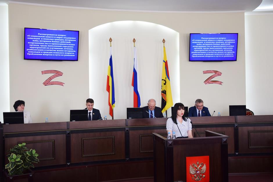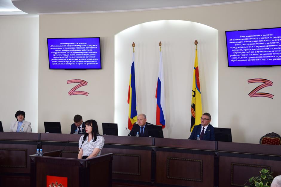 С докладом по первому вопросу повестки — «О социальной защите и мерах поддержки инвалидов и пожилых граждан, ветеранов войн, ветеранов боевых действий, вооруженных сил и правоохранительных органов, труда; выполнении городских мероприятий по улучшению лечения, реабилитации и качества жизни ветеранов, инвалидов и граждан пожилого возраста. Проблемные вопросы и пути их решения» — выступила директор Департамента труда и социального развития Администрации г.Шахты Анна Месропян.