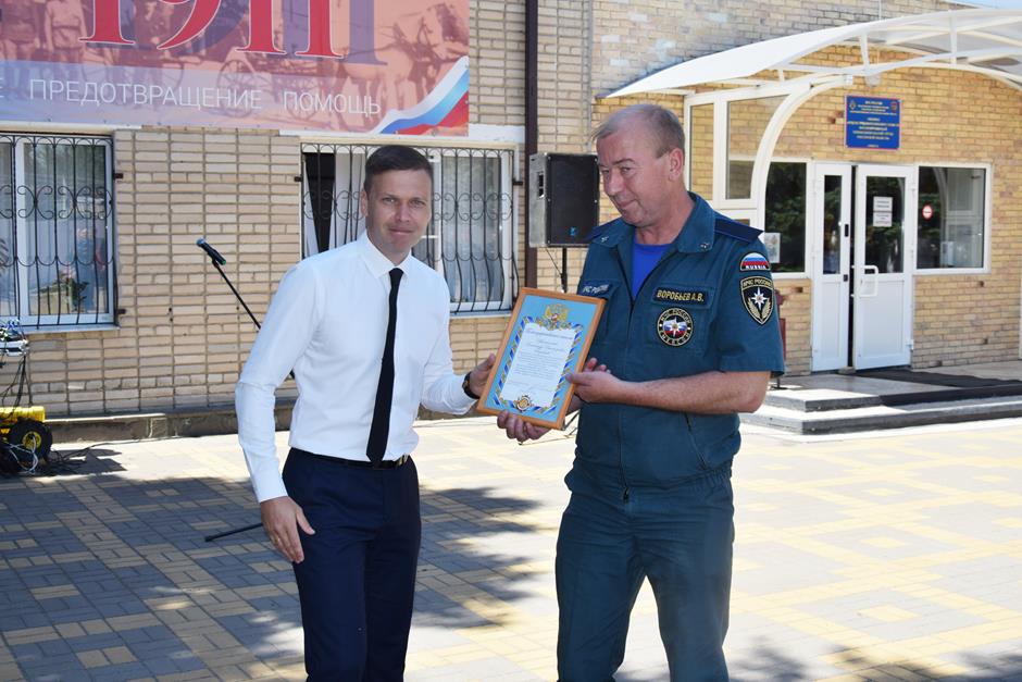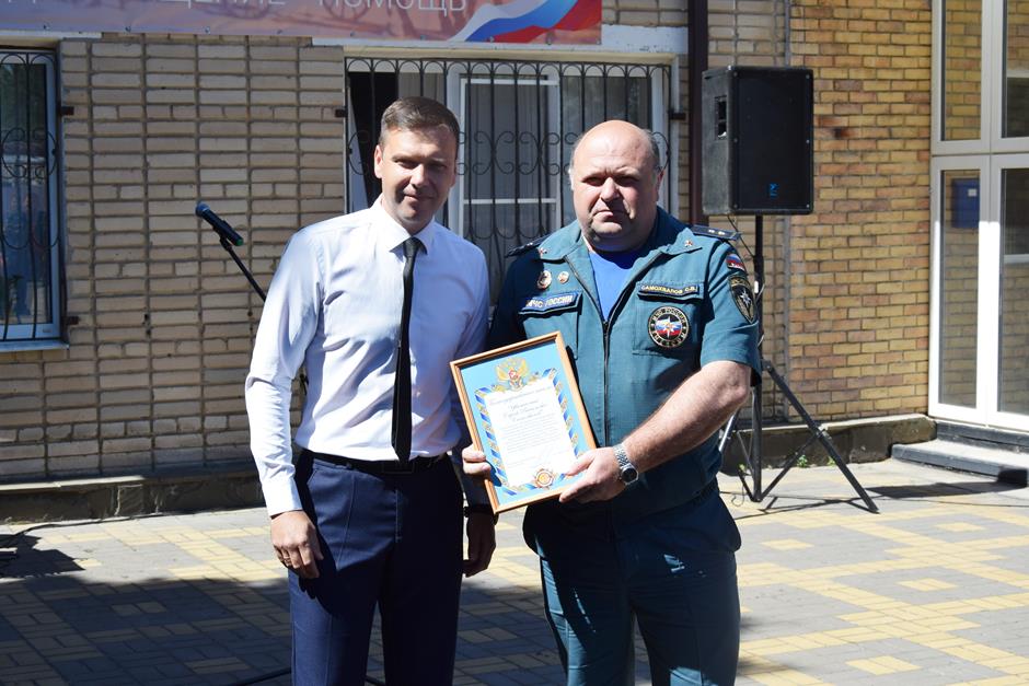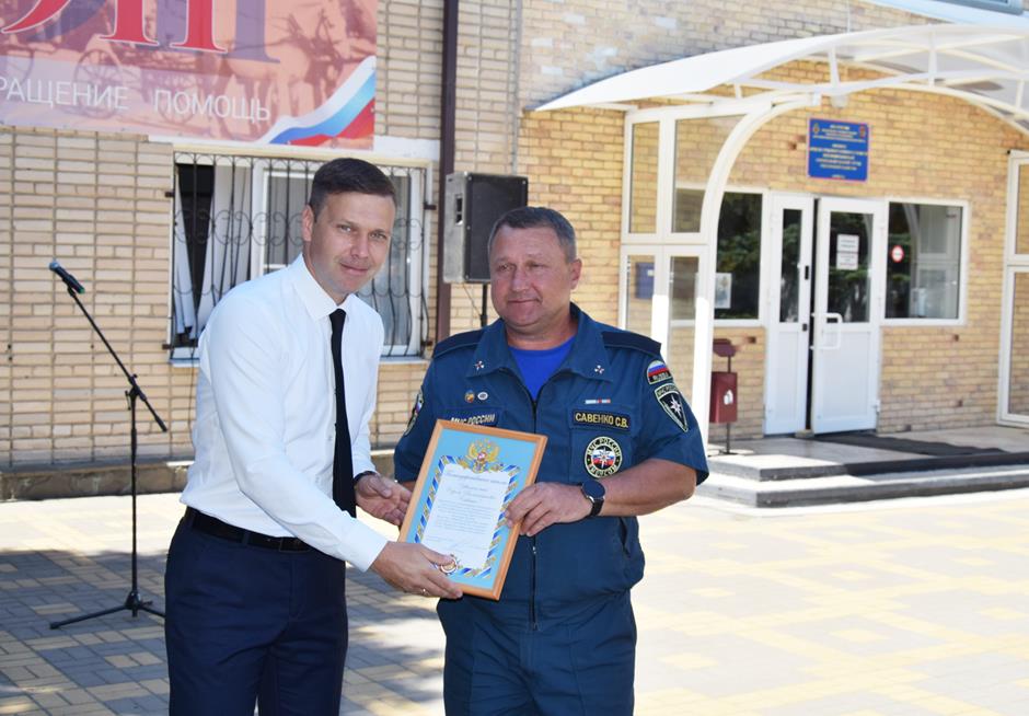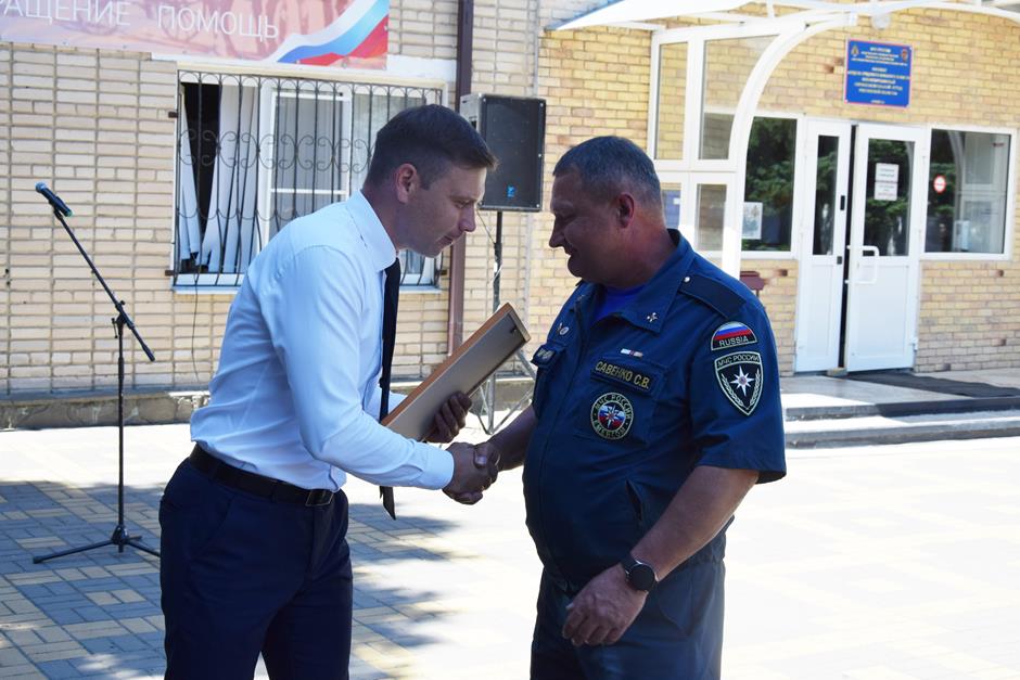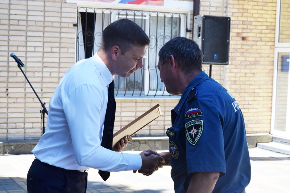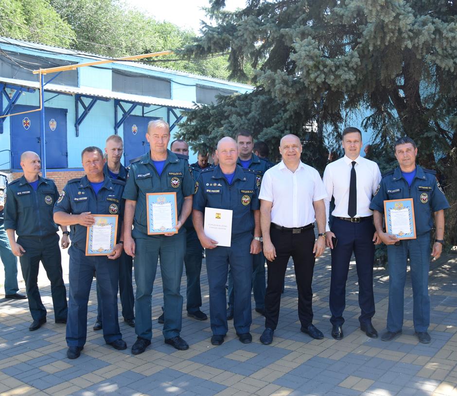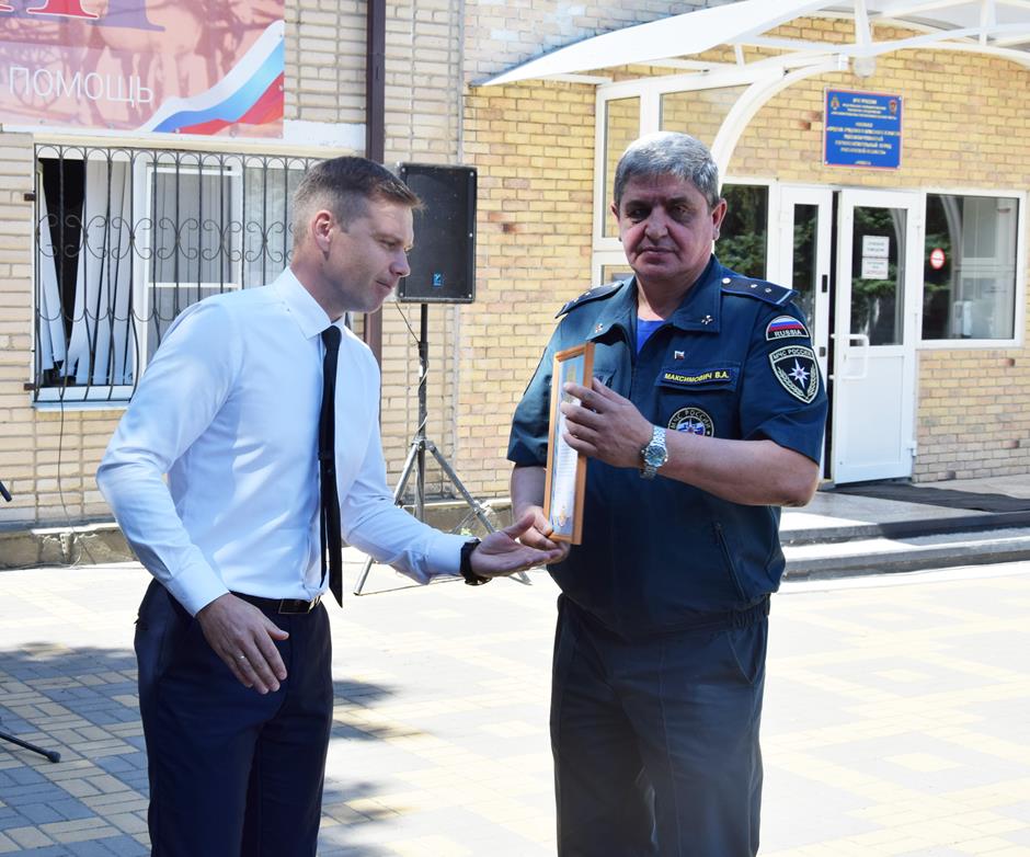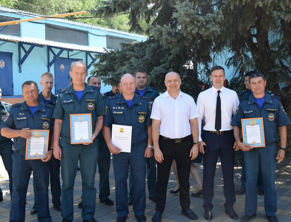 Со 100-летием основания государственной военизированной горноспасательной службы коллектив ВГСЧ поздравили и.о. председателя городской Думы города Шахты Константин Корнеев и депутат Вадим Новоселов