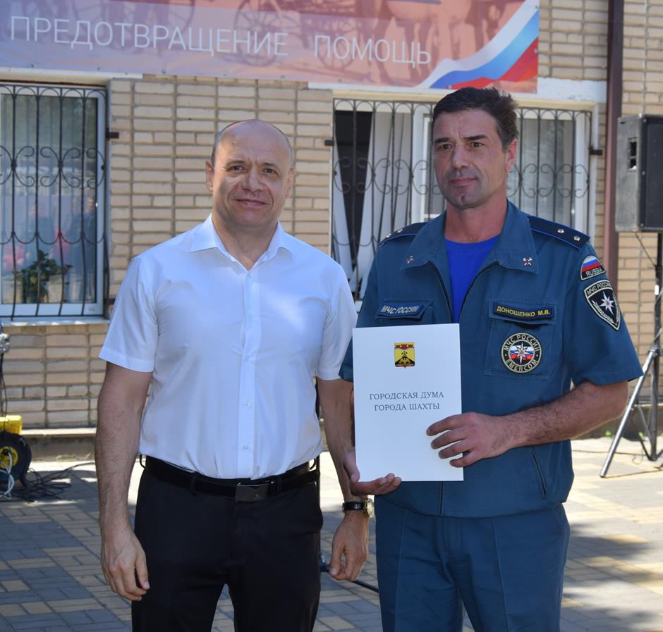 6 июля исполняется 100 лет со дня основания государственной военизированной горноспасательной службы МЧС России. С вековым юбилеем ветеранов и действующих бойцов ВГСЧ поздравил и.о. председателя городской Думы города Шахты Константин Корнеев. Он поблагодарил коллектив военизированного горноспасательного отряда Ростовской области «Ордена Трудового Красного Знамени» — филиала Федерального унитарного предприятия «Военизированная горноспасательная часть» за профессионализм, труд, мужество, отвагу, умелые, грамотные и оперативные действия в условиях ЧС на объектах ведения горных работ, спасенные жизни людей и вручил награды депутатского корпуса. За высокий профессионализм, активную гражданскую позицию и в связи со 100-летием основания государственной военизированной горноспасательной службы Благодарственными письмами городской Думы города Шахты поощрены: