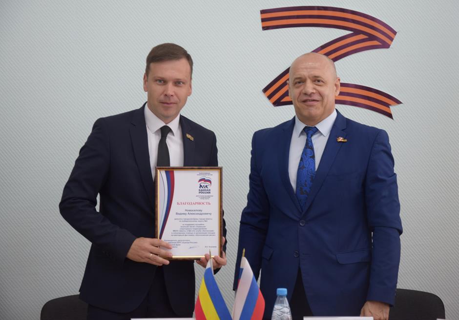 В рамках вопроса №3 состоялось награждение. Олег Данилов и Вадим Новоселов удостоены Благодарности депутатского объединения ВПП «ЕДИНАЯ РОССИЯ» в городской Думе города Шахты — за поддержку ансамбля казачьей песни «Зоренька» структурного подразделения МБКУ г.Шахты «ГДК и К» клуба «Аютинский» и спонсорскую помощь в организации поездки на ежегодный фестиваль «Шолоховская весна».