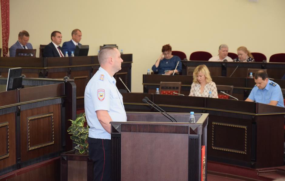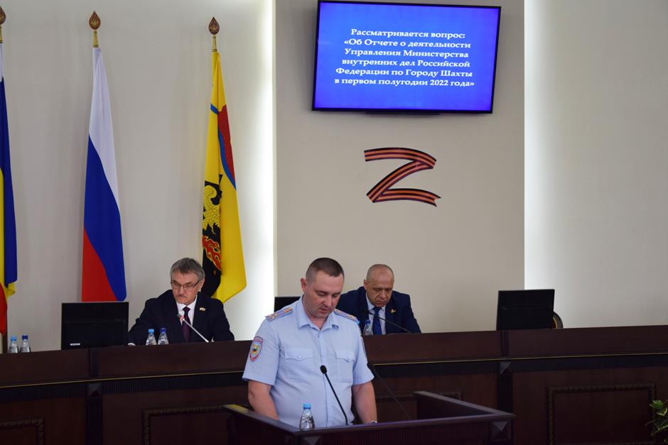 По первому вопросу повестки с информацией о деятельности Управления Министерства внутренних дел Российской Федерации по Городу Шахты в первом полугодии 2022 года выступил врио начальника УМВД России по г. Шахты Юрий Пущеленко, отметив в отчетном периоде увеличение почти на четверть к прошлогоднему показателю зарегистрированных правонарушений (1394/1124). Раскрываемость тяжких преступлений -убийств, изнасилований и разбойных нападений – по-прежнему на высоком уровне: 100%.