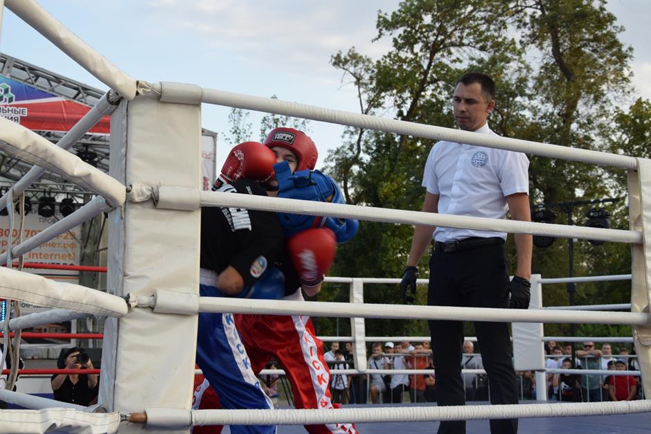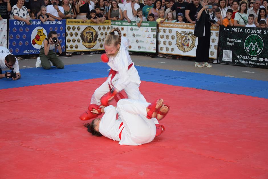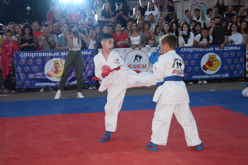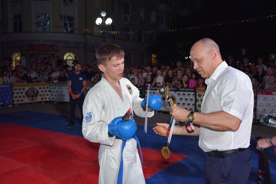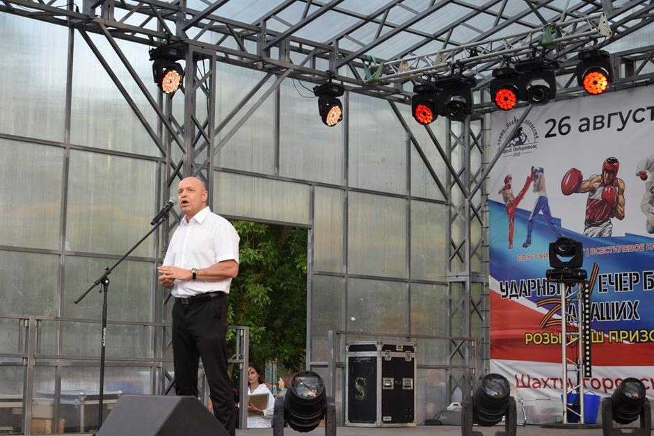 После торжественного собрания в драматическом театре с участием губернатора Ростовской области Василия Голубева и первого заместителя председателя ЗСРО Сергея Михалева эпицентр событий переместился в Александровский парк. Жителей пригласили на Ударный вечер боев «Zа Наших», организованный ДСО «Георгий Победоносец» в поддержку спецоперации России по денацификации и демилитаризации Украины.
