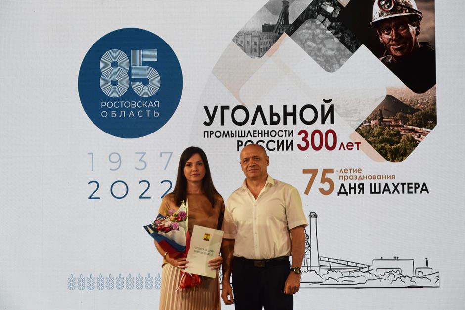 Вечером на сцене Александровского парка состоялось вручение главой Администрации города Андреем Ковалевым Свидетельств заслуженным гражданам города Шахты, занесенным на Доску Почета, а также поощрений председателя комитета Законодательного Собрания Ростовской области по взаимодействию с общественными объединениями, молодежной политике, физической культуре, спорту и туризму Ирины Жуковой и депутатского корпуса города. Церемонию награждения Знаком почета муниципального образования «Город Шахты» — медалью «За заслуги перед городом Шахты» и.о. директора Департамента здравоохранения Лилии Васютиной и члена Общественной палаты города Владимира Жемойтеля, Почетной грамотой городской Думы директораГБУСОН РО «Центр реабилитации и абилитации «Добродея» Марины Важениной и Благодарственными письмами городской Думы провел и.о. председателя городской Думы города Шахты Константин Корнеев. Поощрения депутатского корпуса удостоены: